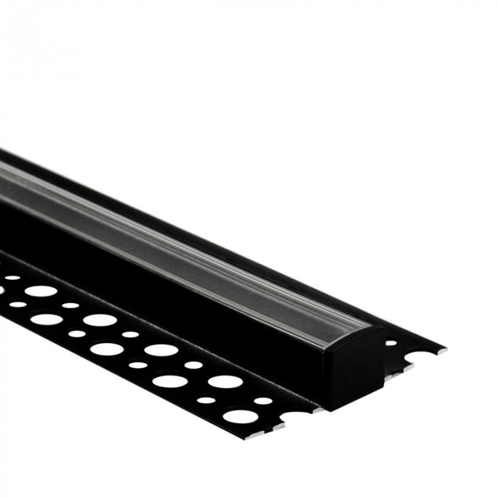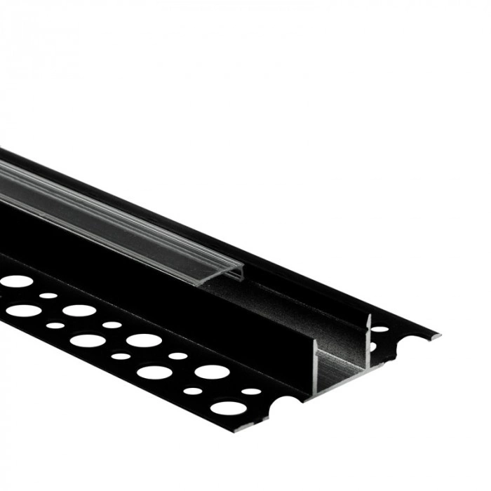 Profil Aluminiowy LED do Płyt GK Gipsowych REGIPS Podpłytkowy do Glazury Czarny 1m z Kloszem Przezroczystym do Taśm LED + Zaślepki seria GN Ecolight