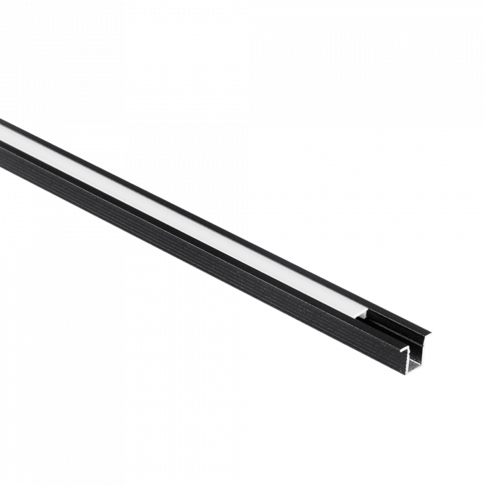 Profil Aluminiowy LED Wpuszczany Podtynkowy Czarny 2m z Kloszem Mlecznym do Taśm LED + Zaślepki seria PW Ecolight