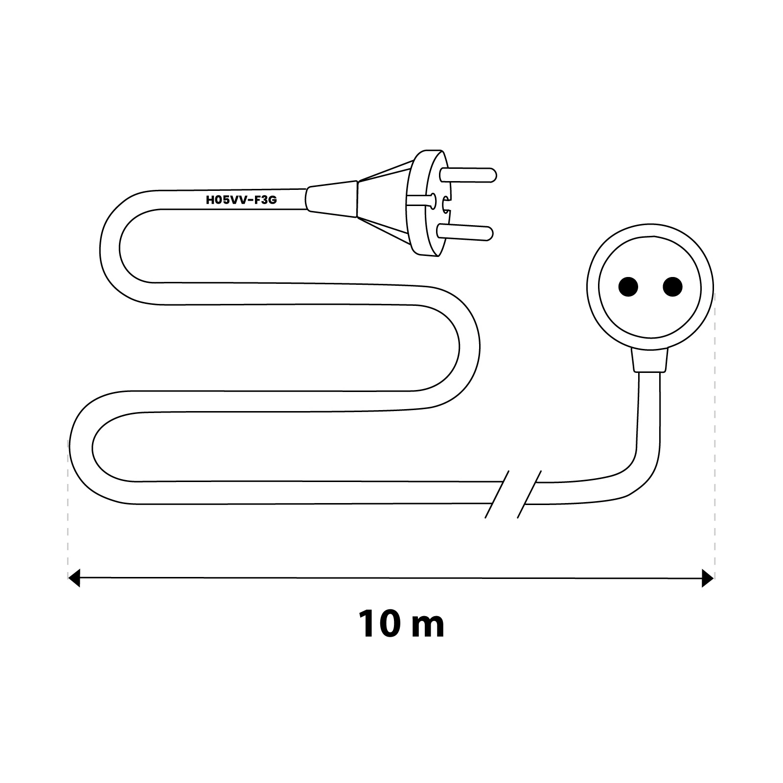 • Wysokiej jakości elastyczny przewód H05VV-F3G długości 10 metrów
