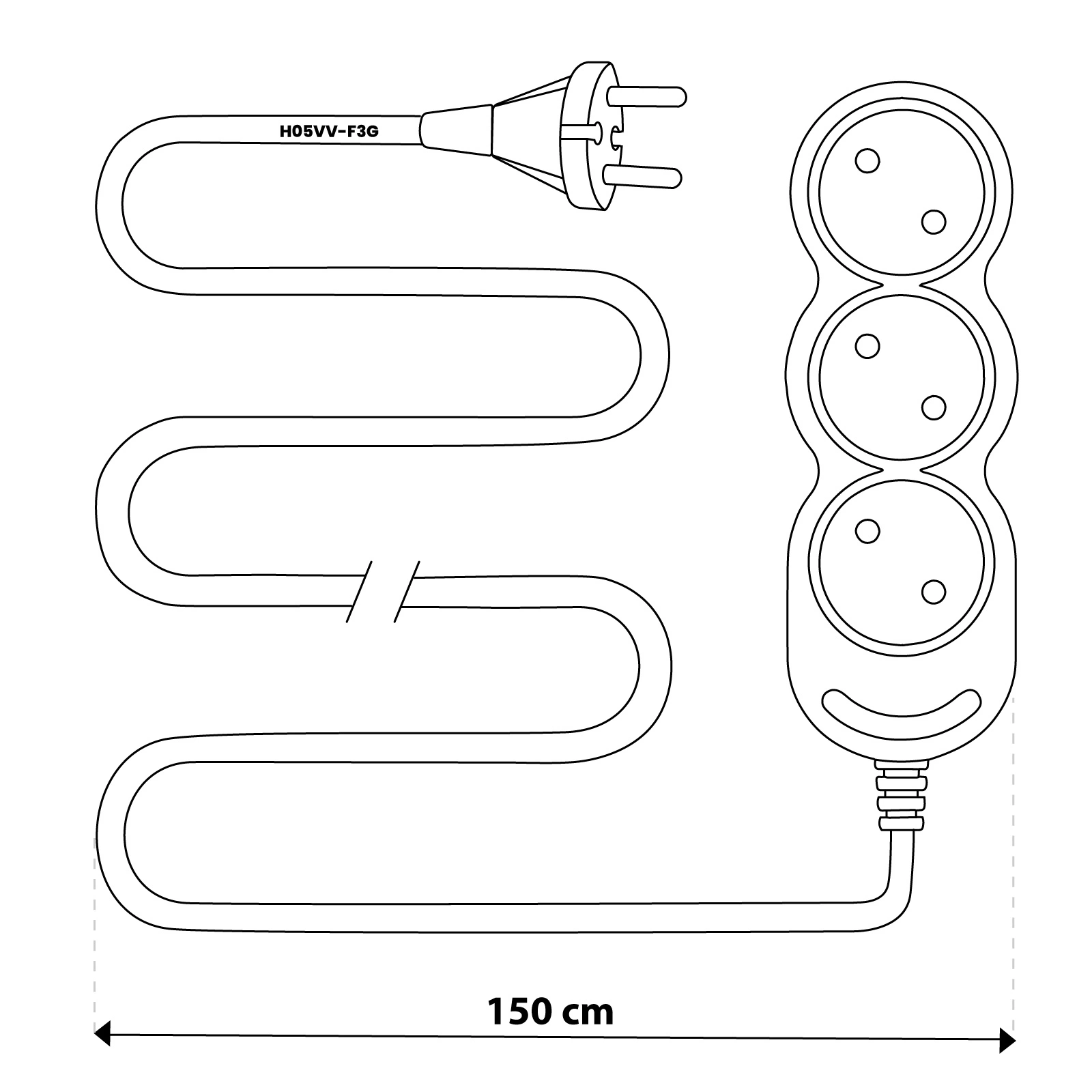 - Przewód H05VV-F (3 × 1 mm², 1,5 m) – elastyczny i trwały kabel do swobodnego użytkowania.