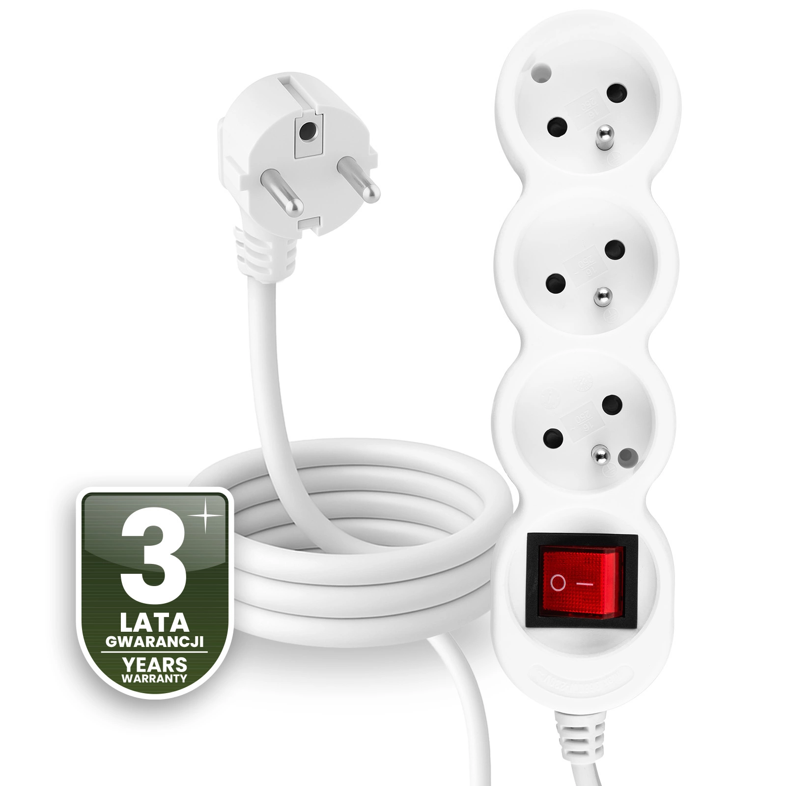 W przedłużaczu zastosowano przewody z czystej miedzi, które zapewniają doskonałą przewodność i stabilne zasilanie bez strat energii. Miedź charakteryzuje się także wysoką odpornością na korozję, elastycznością i wytrzymałością mechaniczną, co sprawia, że przewód nie łamie się i zachowuje pełną funkcjonalność przez długie lata. To inwestycja w jakość, bezpieczeństwo i spokój użytkowania.