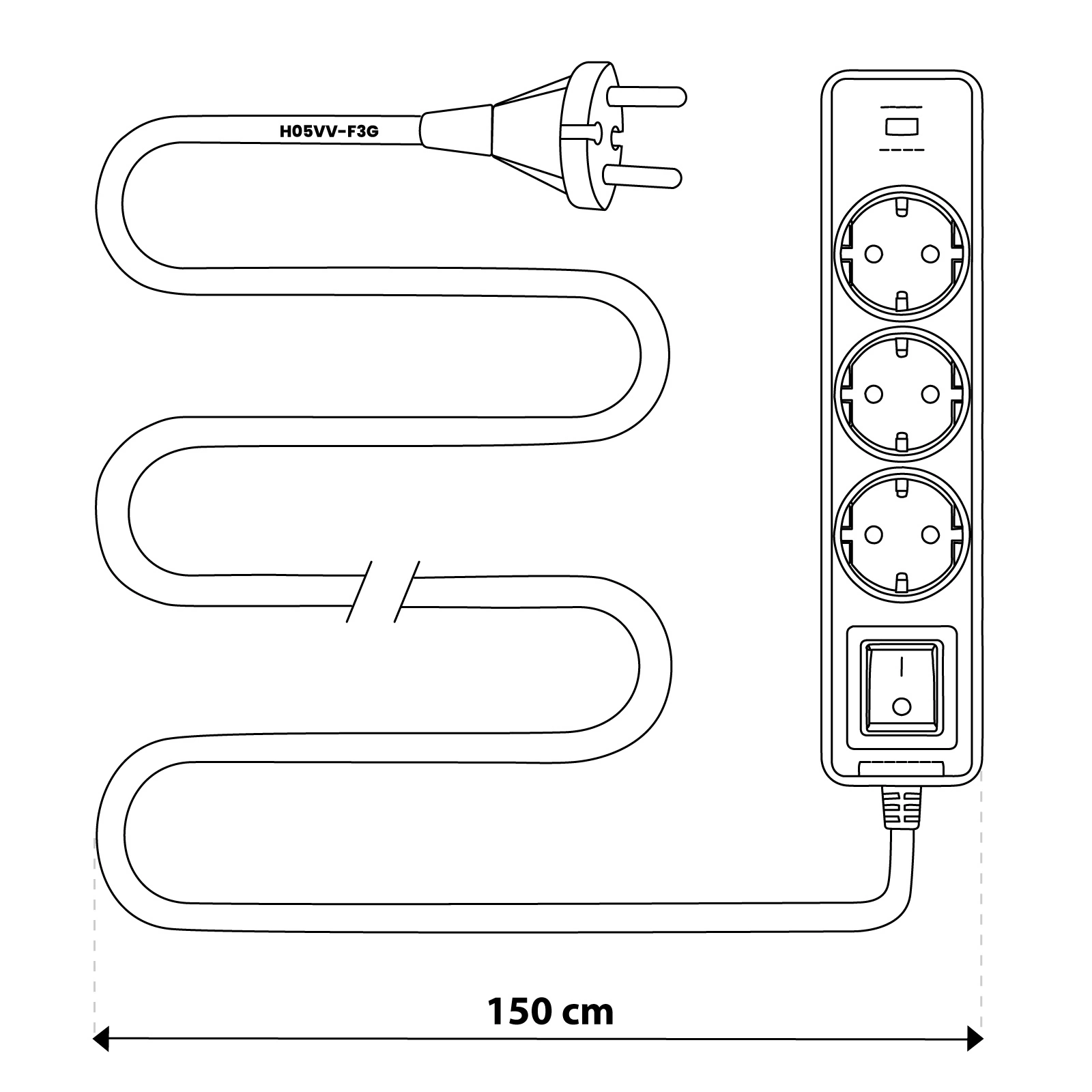 - 1,5-metrowy przewód daje pełną swobodę rozmieszczenia urządzeń – zasilasz sprzęt tam, gdzie jest Ci najwygodniej.