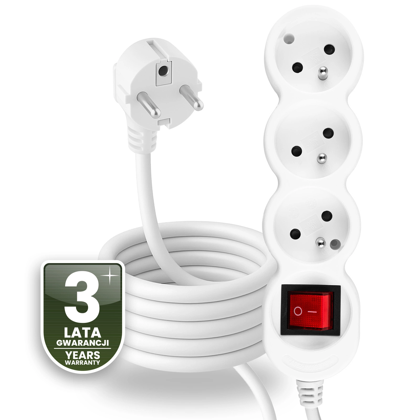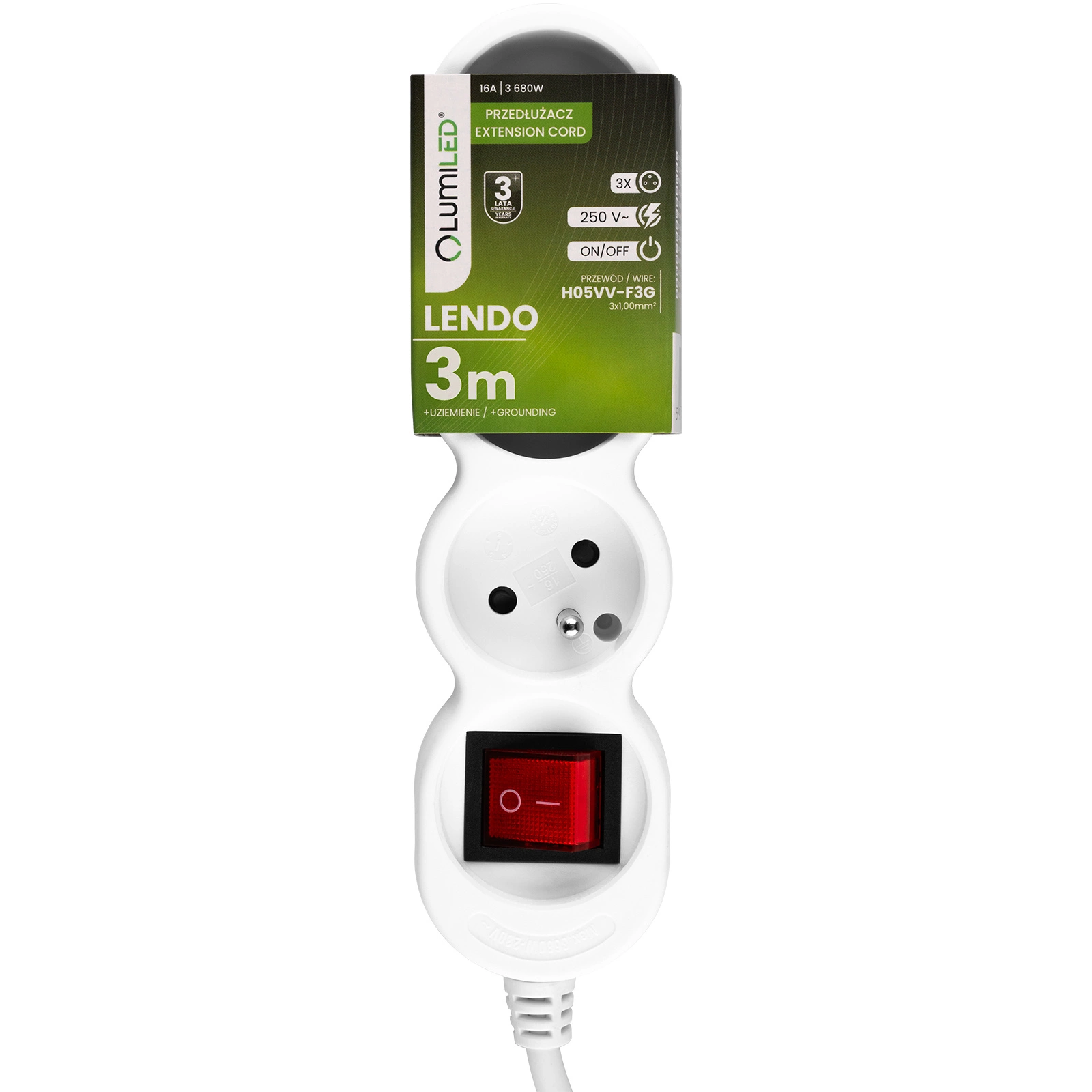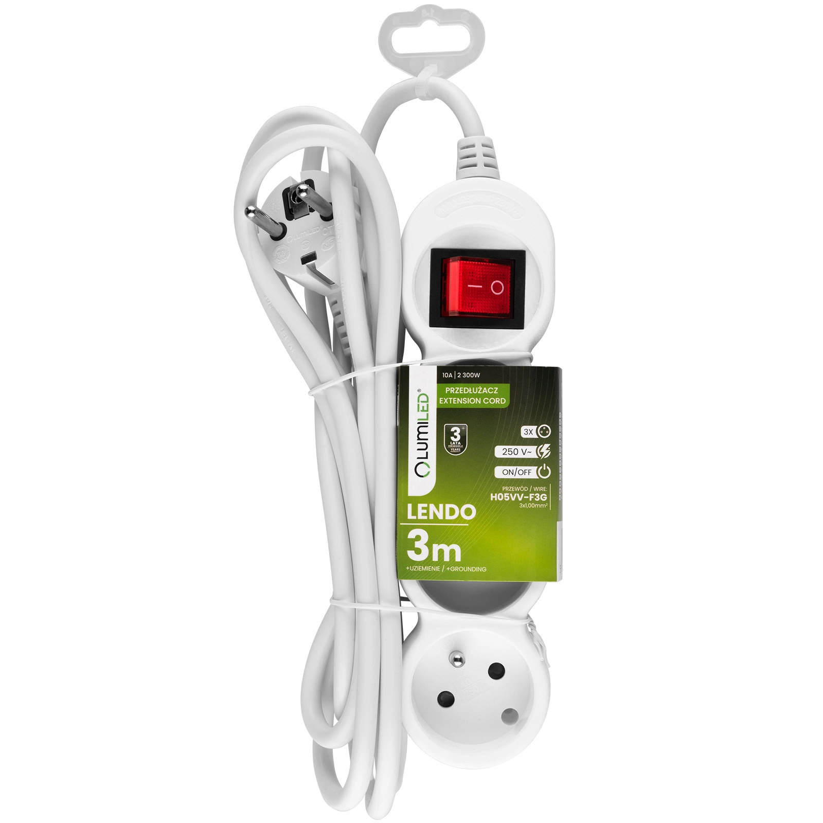 Przedłużacz Sieciowy Kabel z Uziemieniem Listwa Zasilająca 3 Gniazda 3m Włącznik ON/OFF Biały Sznur Lendo Lumiled - czwarta cecha produktu