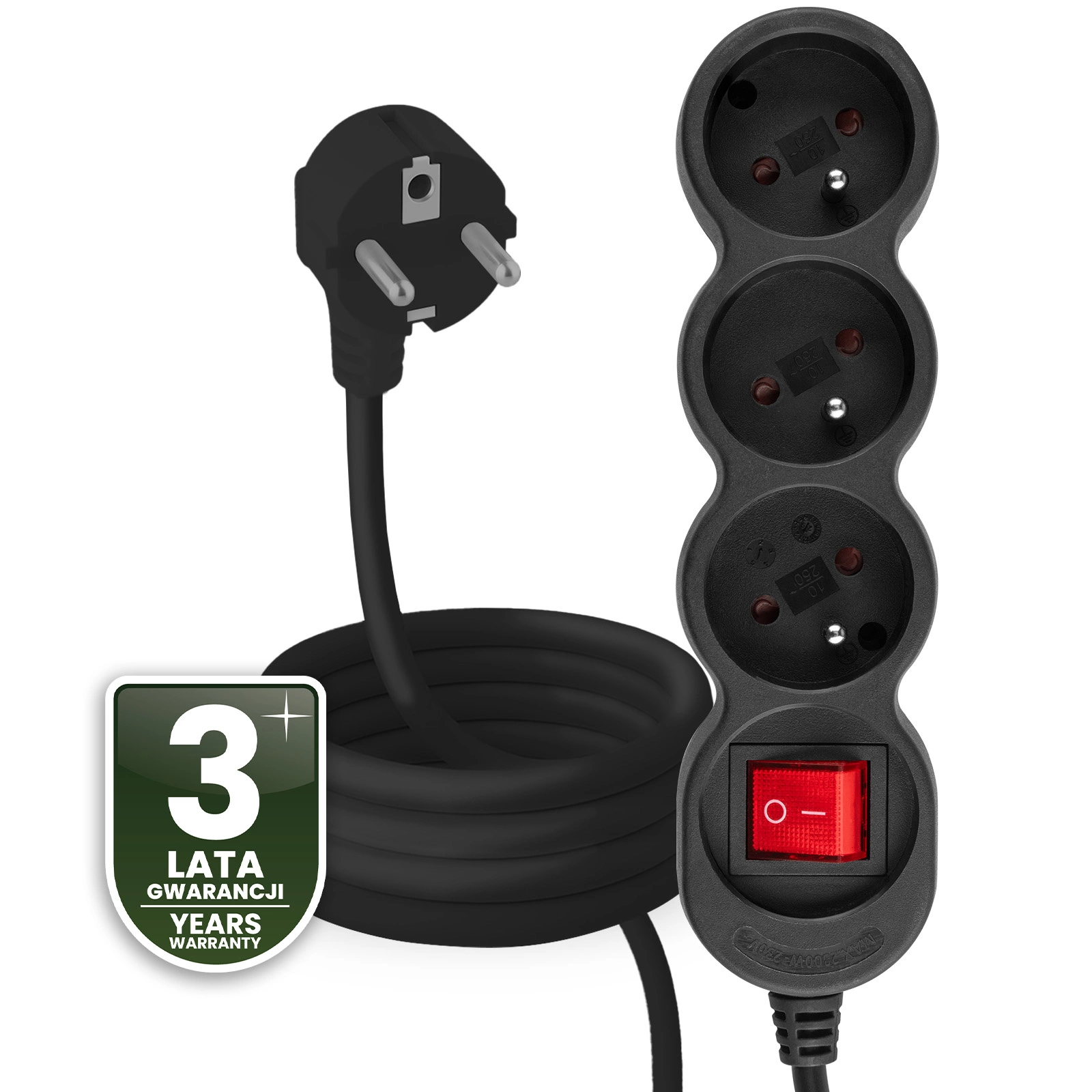 - 3-metrowy przewód daje pełną swobodę rozmieszczenia urządzeń – zasilasz sprzęt tam, gdzie jest Ci najwygodniej.