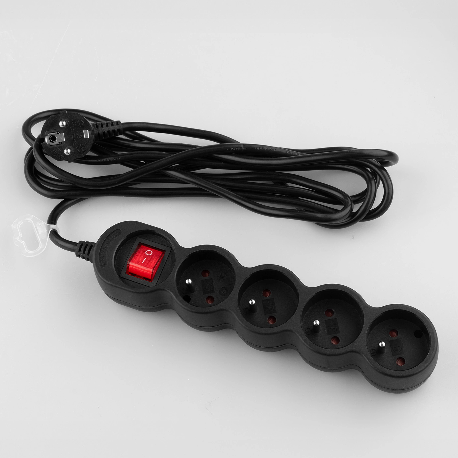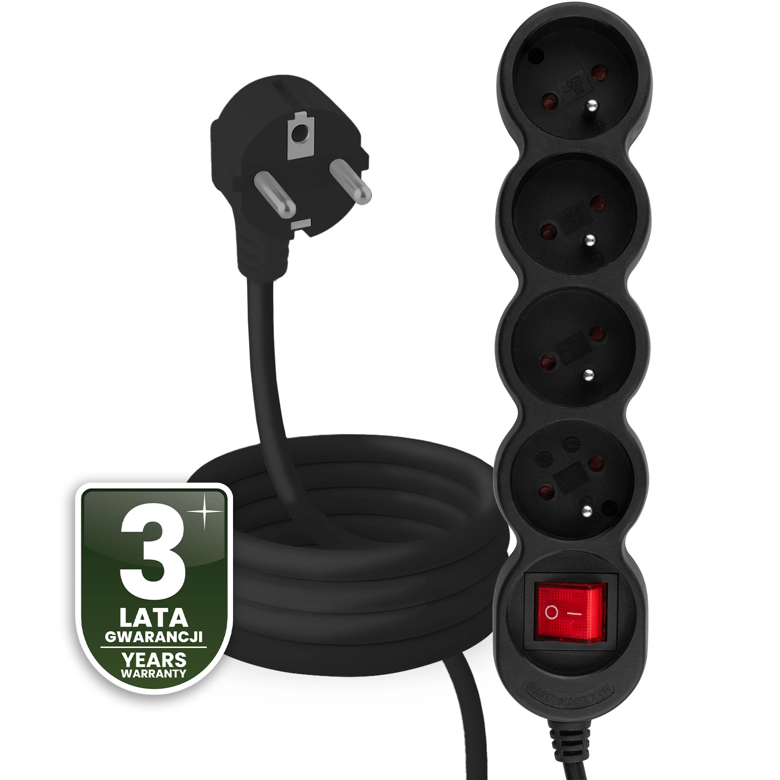 Przedłużacz Sieciowy Kabel z Uziemieniem Listwa Zasilająca 4 Gniazda 3m Włącznik ON/OFF Czarny Sznur Lendo Lumiled