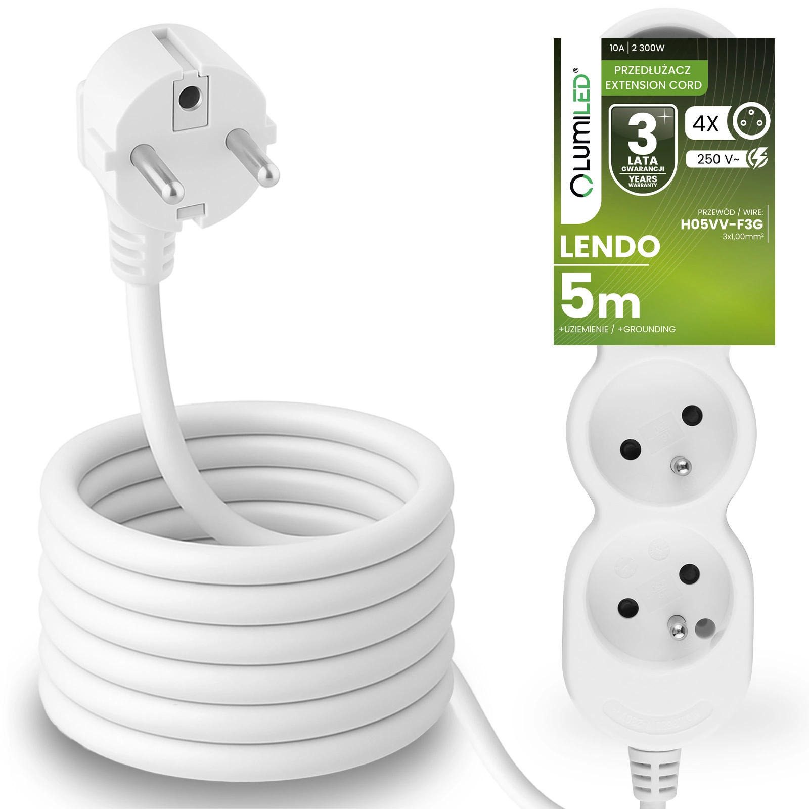 Przedłużacz Sieciowy Kabel z Uziemieniem Listwa Zasilająca 4 Gniazda 5m Biały Sznur Lendo Lumiled