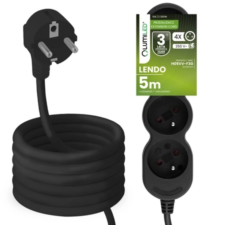 Przedłużacz Sieciowy Kabel z Uziemieniem Listwa Zasilająca 4 Gniazda 5m Czarny Sznur Lendo Lumiled - czwarta cecha produktu