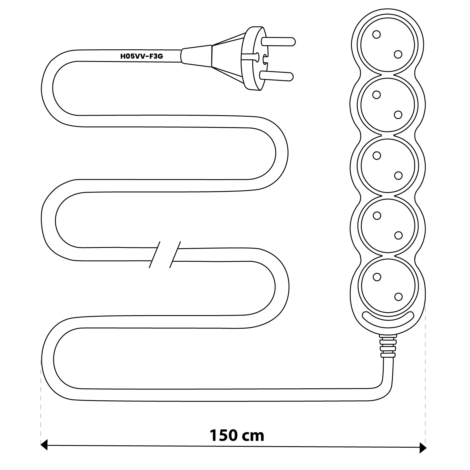 - Przewód H05VV-F (3 × 1 mm², 1,5 m) – elastyczny i trwały kabel do swobodnego użytkowania.
