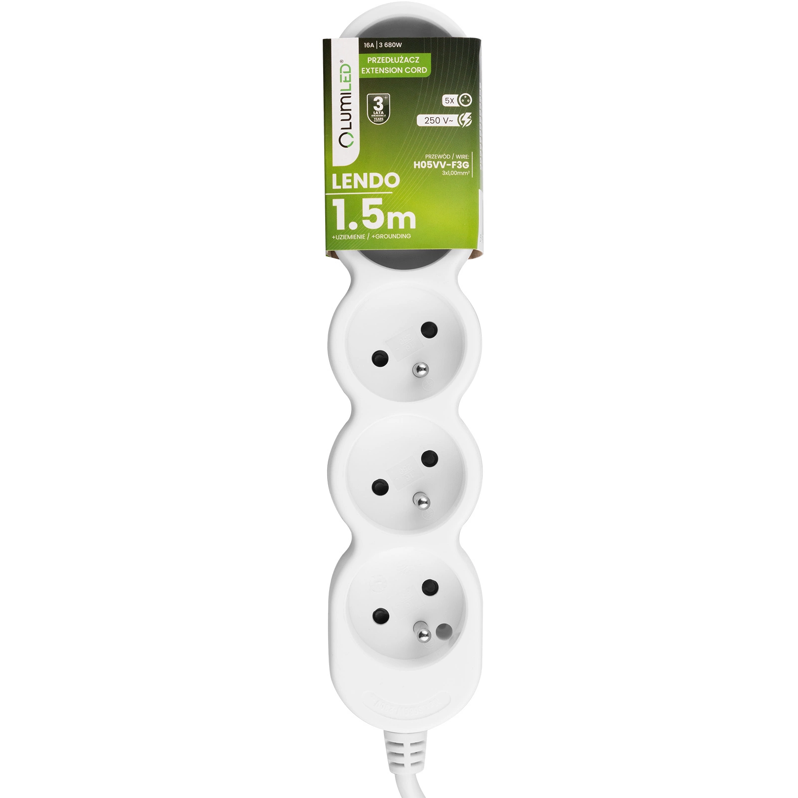 Przedłużacz Sieciowy Kabel z Uziemieniem Listwa Zasilająca 5 Gniazda 1.5m Biały Sznur Lendo Lumiled - główne zdjęcie produktu