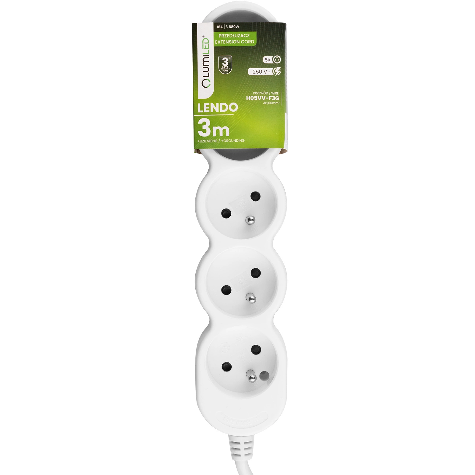 Przedłużacz Sieciowy Kabel z Uziemieniem Listwa Zasilająca 5 Gniazda 3m Biały Sznur Lendo Lumiled