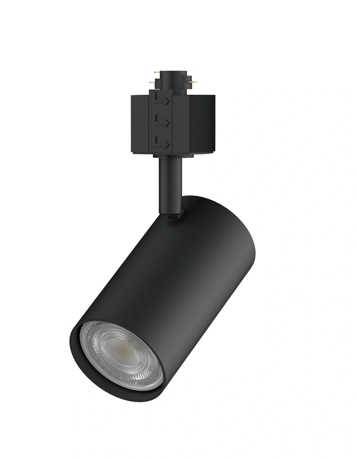 Oprawa z wymiennym źródłem światła na trzonek GU10 daje pełną swobodę wyboru żarówki o mocy do 5W, dopasowanej do indywidualnych potrzeb. To praktyczne rozwiązanie, które łączy estetykę, niezawodność i elastyczność, ułatwiając rozbudowę systemu szynowego. Czarna obudowa dodaje całości wyrazistego, eleganckiego charakteru.