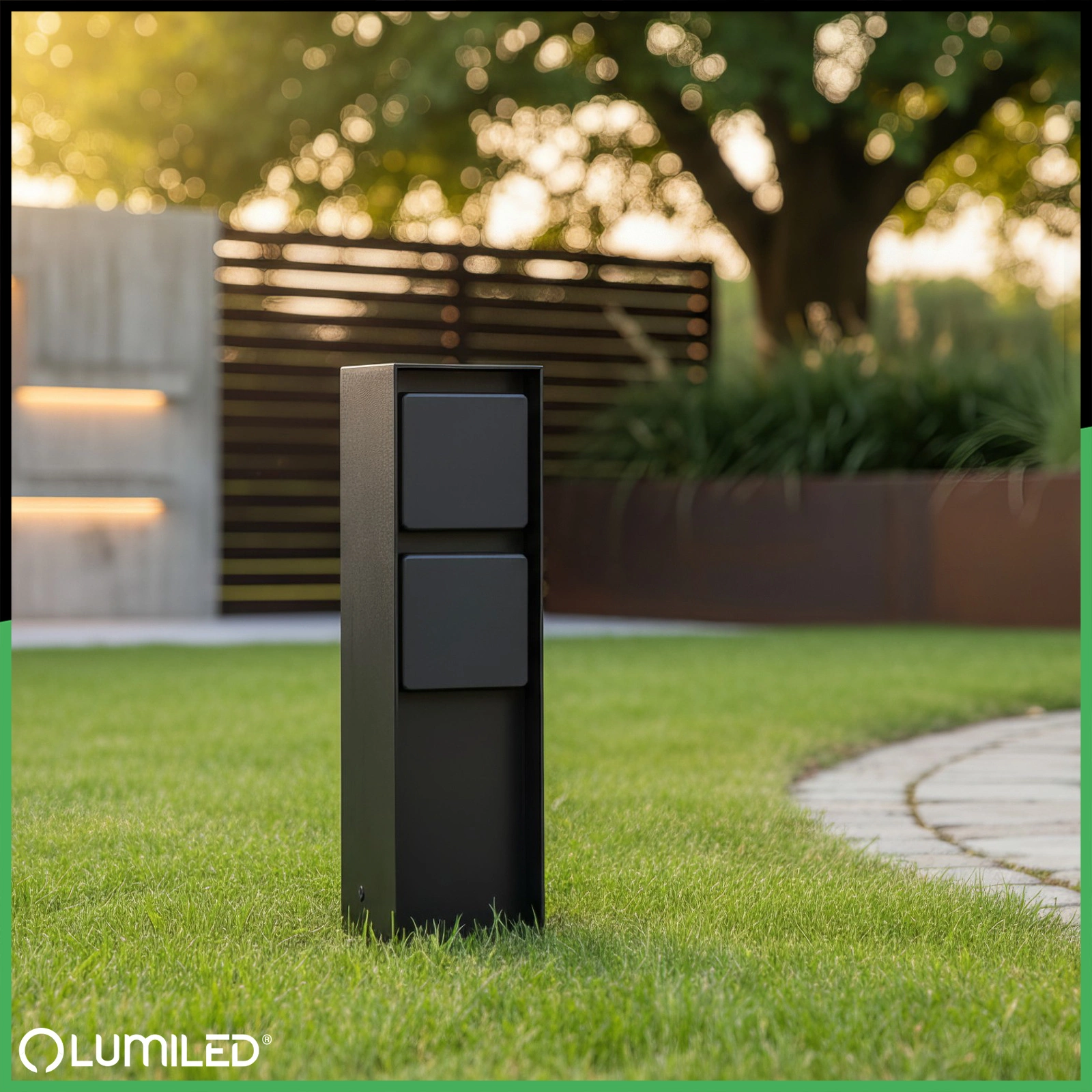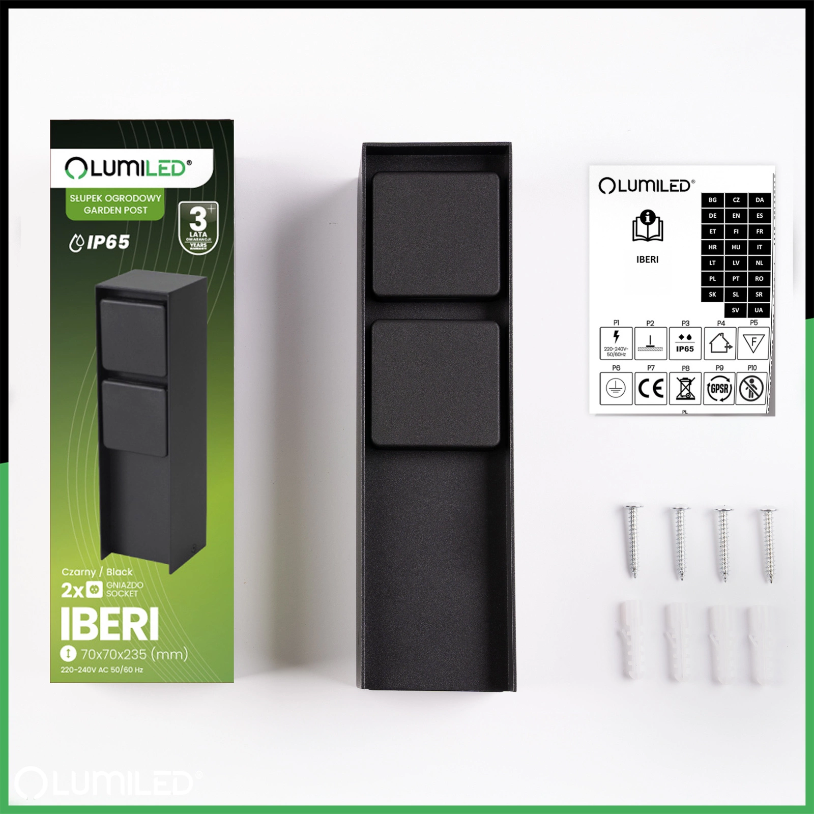 Słupek IBERI marki Lumiled umożliwia podłączenie urządzeń takich jak kosiarka, oświetlenie czy dekoracje świetlne, bez przeciągania kabli przez cały ogród. Wyposażony w 2 gniazda sieciowe SCHUKO o wysokiej odporności na wilgoć i deszcz działa niezawodnie przez cały rok. Solidna konstrukcja łączy trwałość z estetycznym wyglądem, dzięki czemu słupek doskonale sprawdza się przy podjeździe, na tarasie lub w każdej przestrzeni zewnętrznej.