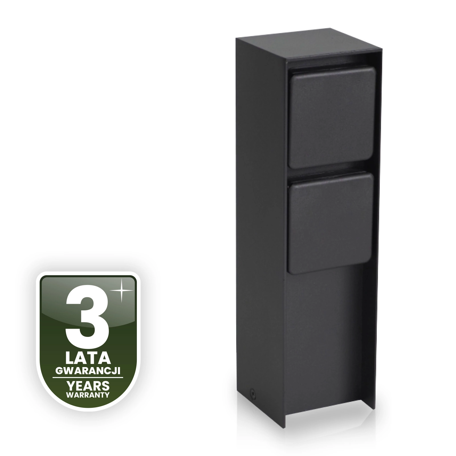 Bezpieczeństwo i niezawodność w każdej pogodzie – słupek sprawdza się zarówno w deszczu, jak i przy dużym zapyleniu. Dzięki klasie szczelności IP65 obudowa chroni wnętrze przed wilgocią, kurzem i silnymi strumieniami wody. Ochrona elementów elektrycznych wydłuża żywotność urządzenia i ogranicza potrzebę konserwacji. To idealne rozwiązanie do przestrzeni narażonych na zmienne warunki atmosferyczne – od ogrodu po podjazd czy elewację.