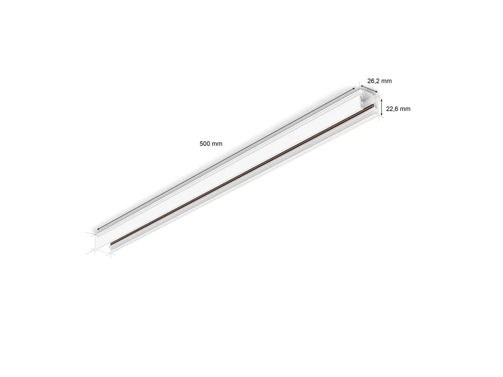 - Elastyczna rozbudowa systemu: Szyna o długości 0.5 m pozwala łatwo rozszerzyć instalację oświetleniową i dopasować ją do układu pomieszczenia.