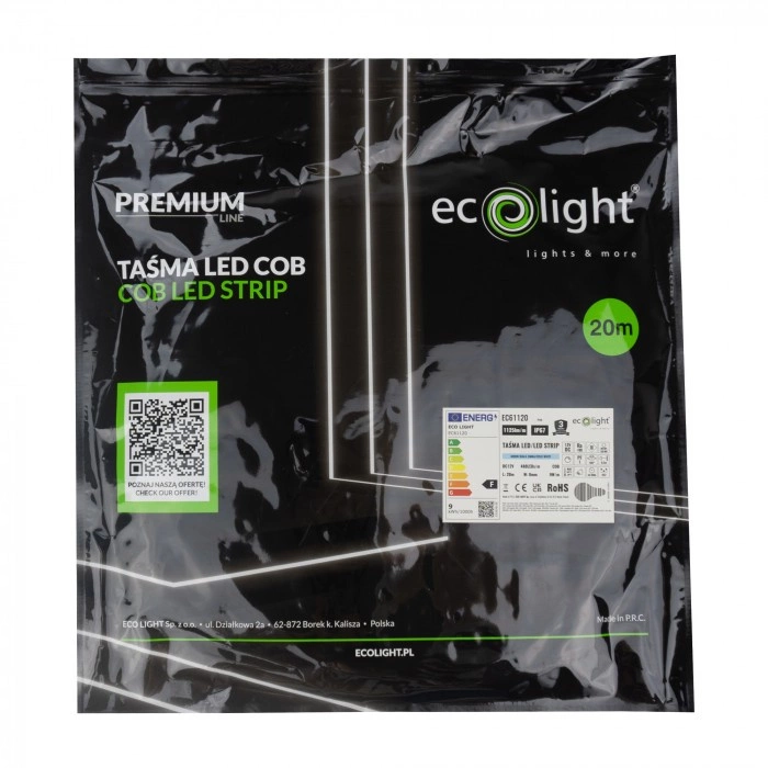 - Wyjątkowa jasność: Taśma LED Ecolight zapewnia strumień świetlny 22500 lm, gwarantując znakomitą widoczność i efektywność oświetlenia.