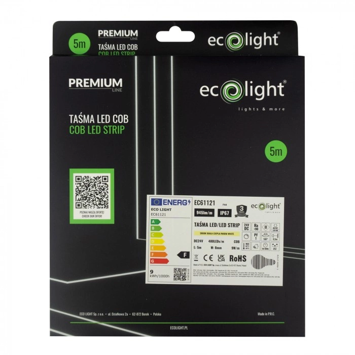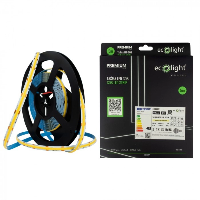 - Technologia COB: Dzięki 480 diodom LED na metr, światło rozchodzi się bez przerw i cieni, tworząc estetyczny efekt wizualny.
