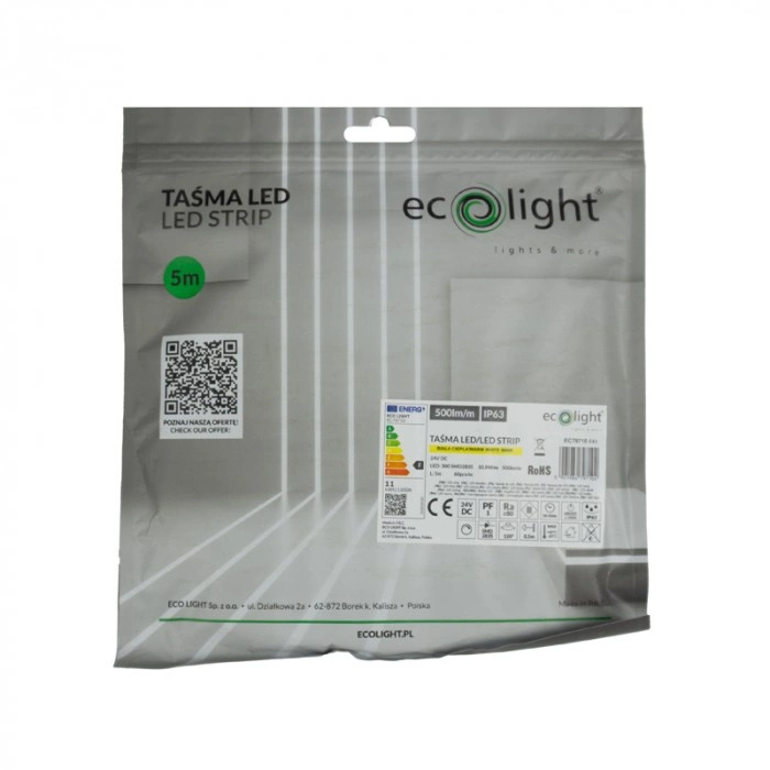 Odkryj nowy wymiar oświetlenia z wyjątkową taśmą LED marki Ecolight, oferującą moc 10.8W na metr oraz imponujące 500 lm na metr. Zastosowanie nowoczesnych diod SMD 2835 gwarantuje nie tylko długotrwałą wydajność, ale również równomierne rozprowadzanie światła o ciepłym, przyjemnym odcieniu 3000K. Perfekcyjna do zastosowania zarówno wewnątrz, jak i na zewnątrz domu, dzięki ochronie o stopniu IP63. Jest to produkt, który doskonale sprawdzi się w Twojej kuchni, łazience, na schodach, a nawet w ogrodzie.