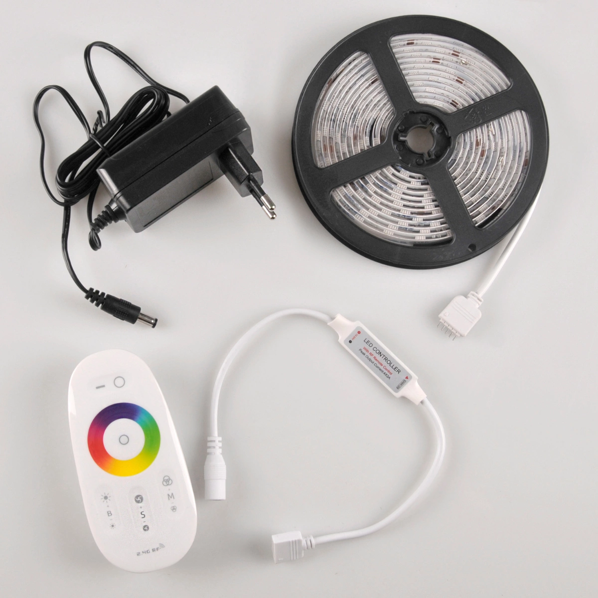 - Kompletny zestaw: W zestawie znajduje się wszystko, co niezbędne do działania systemu, w tym pilot RF i zasilacz, co zapewnia łatwość instalacji.