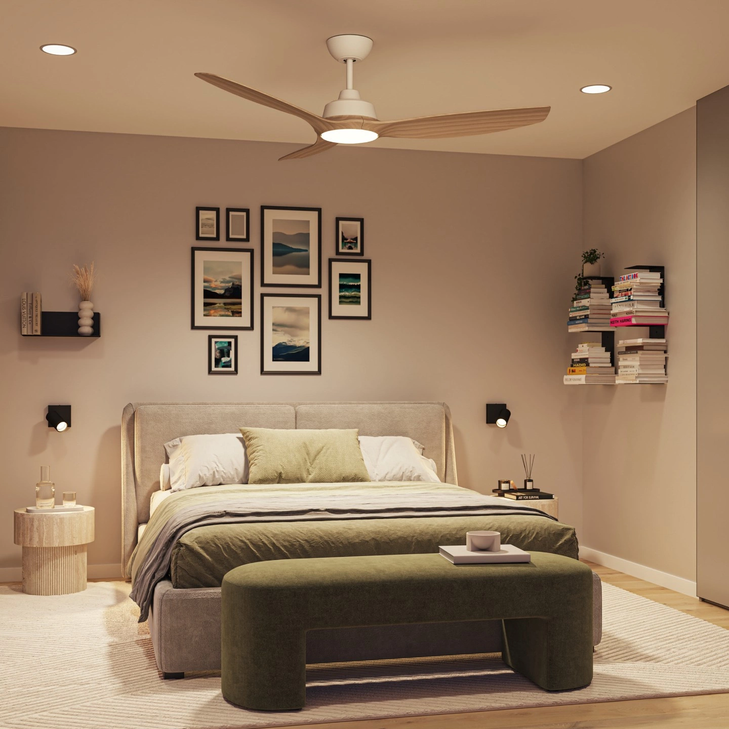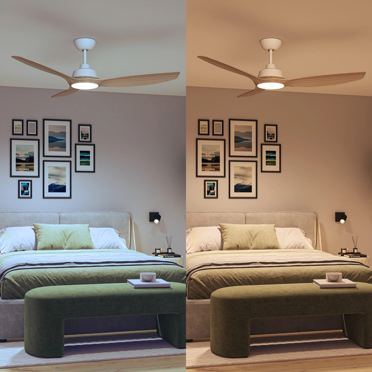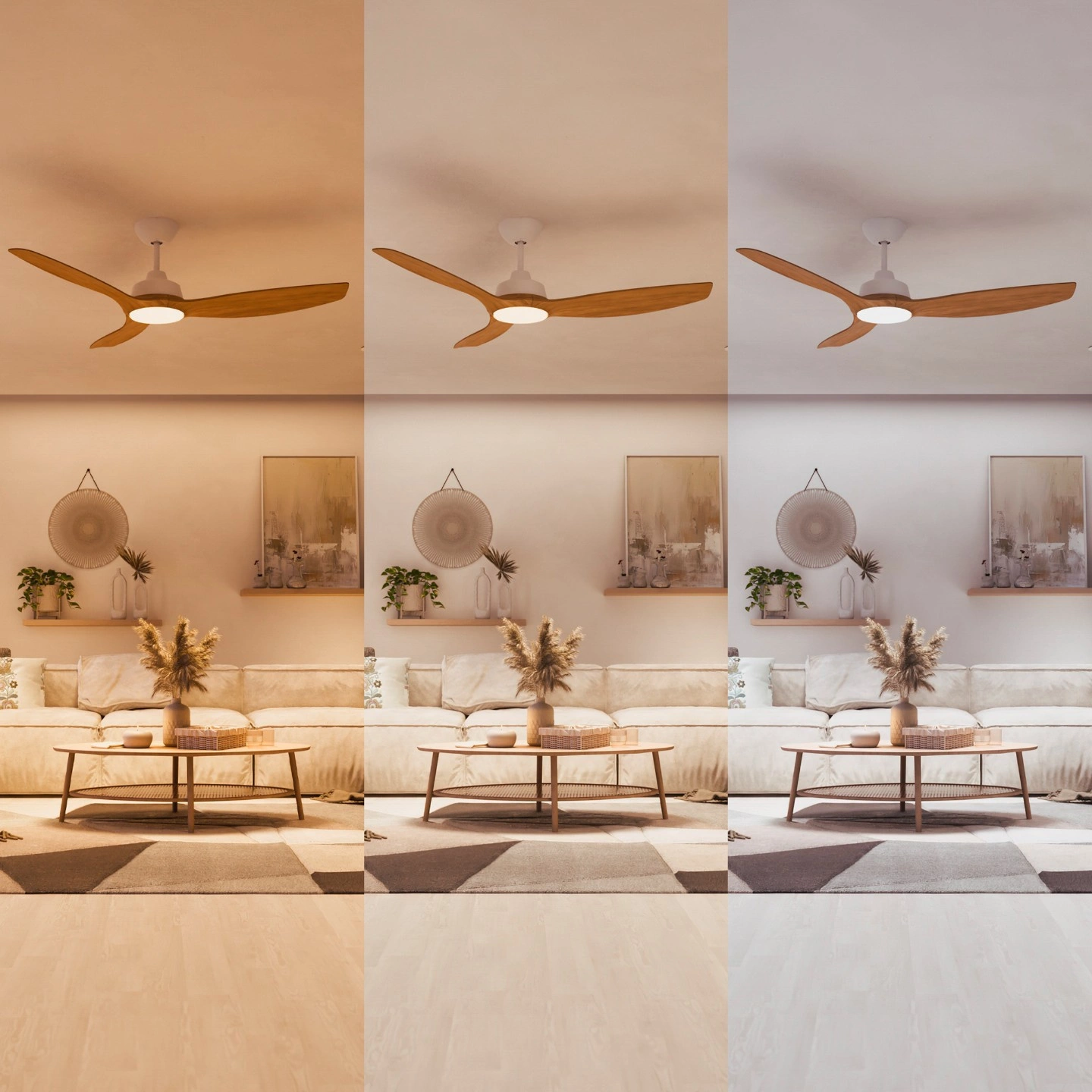 Lampa z Wentylatorem Olas zapewnia równomierne i mocne oświetlenie, które doskonale rozjaśnia całe pomieszczenie bez efektu olśnienia. Nowoczesna technologia LED gwarantuje czyste, stabilne światło, idealne do codziennych czynności w domu. Dzięki precyzyjnie zaprojektowanej optyce i wysokiej jakości diodom lampa oferuje efektywne, energooszczędne oświetlenie przy jednoczesnym zachowaniu komfortu dla oczu. Sterowanie pilotem lub włącznikiem pozwala łatwo dostosować jasność do potrzeb chwili.