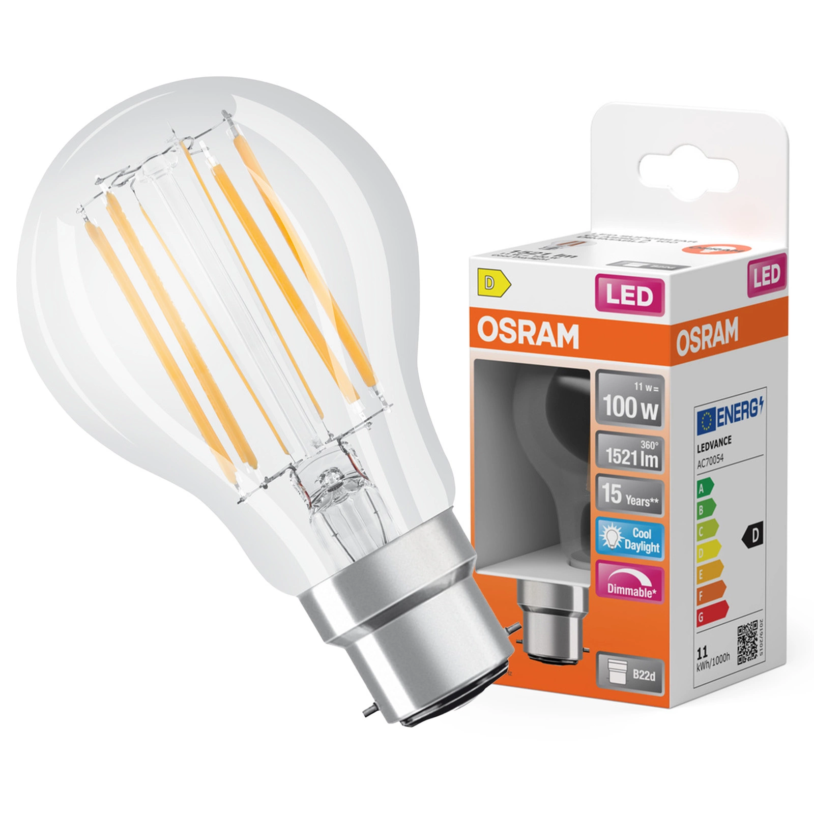 Żarówka posiada standardowy trzonek B22d , co sprawia, że pasuje do większości opraw oświetleniowych na rynku. Dzięki trwałości wynoszącej 15000 godzin i zdolności do wytrzymania 100000 cykli wyłączeniowych, jest to inwestycja na lata. Wykonana ze szkła, z przezroczystą przesłoną, zapewnia estetyczny wygląd i efektywne rozsyłanie światła.