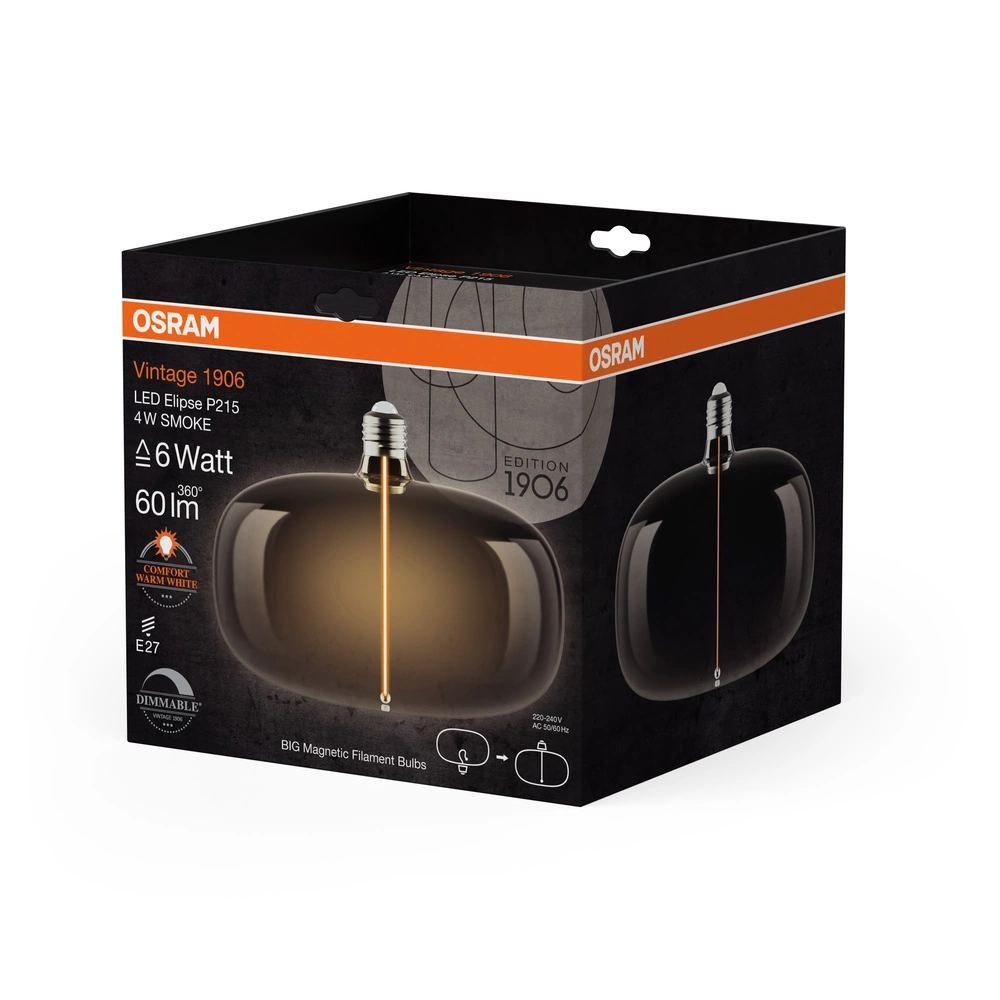 Żarówka LED Dekoracyjna E27 4W = 6W 60lm 1800K Ciepła 320° Dymiona Filament Ściemnialna Vintage 1906 Osram