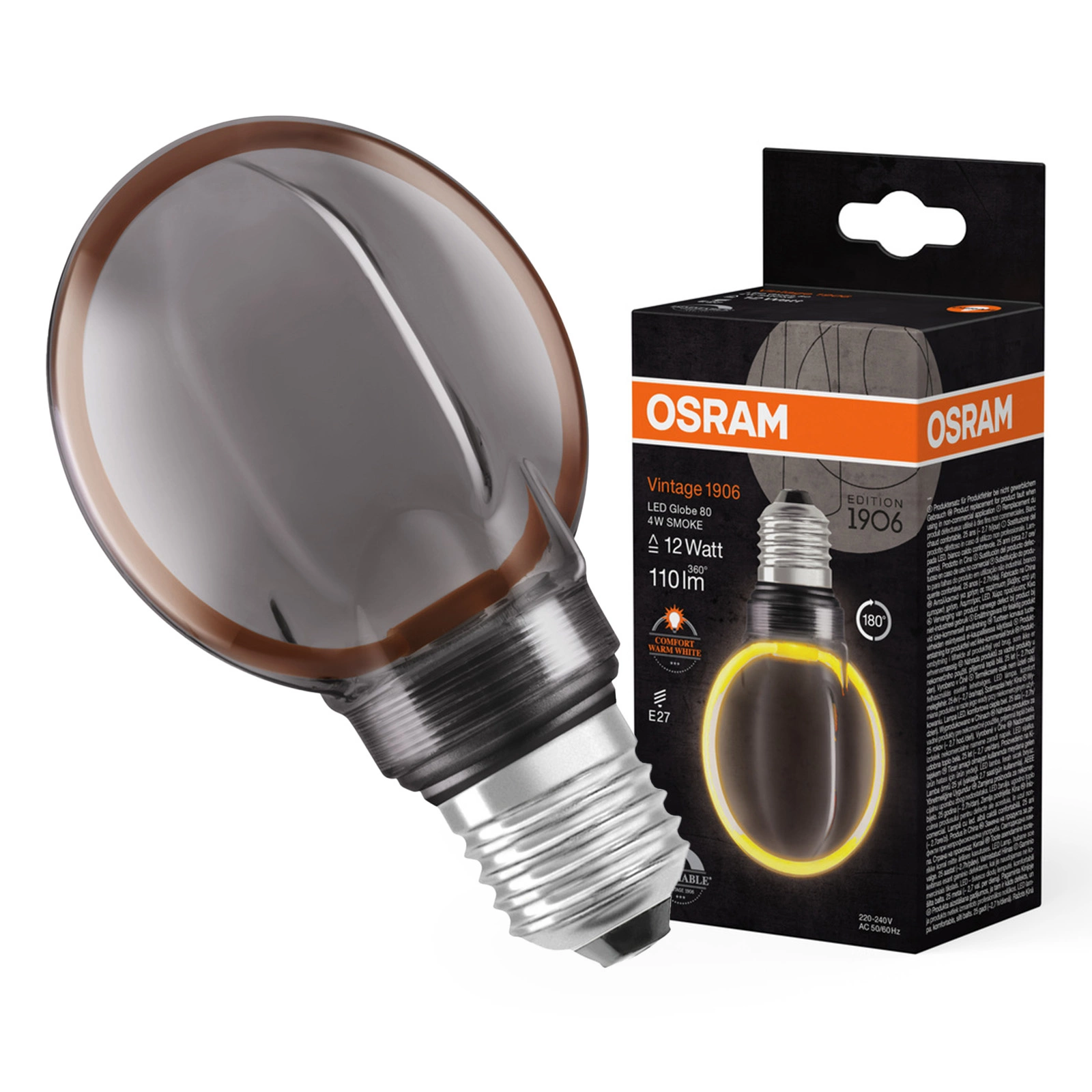 Żarówka LED Dekoracyjna G80 Kula E27 4W = 12W 110lm 1800K Ciepła 330° Dymiona Filament Ściemnialna Vintage 1906 Osram