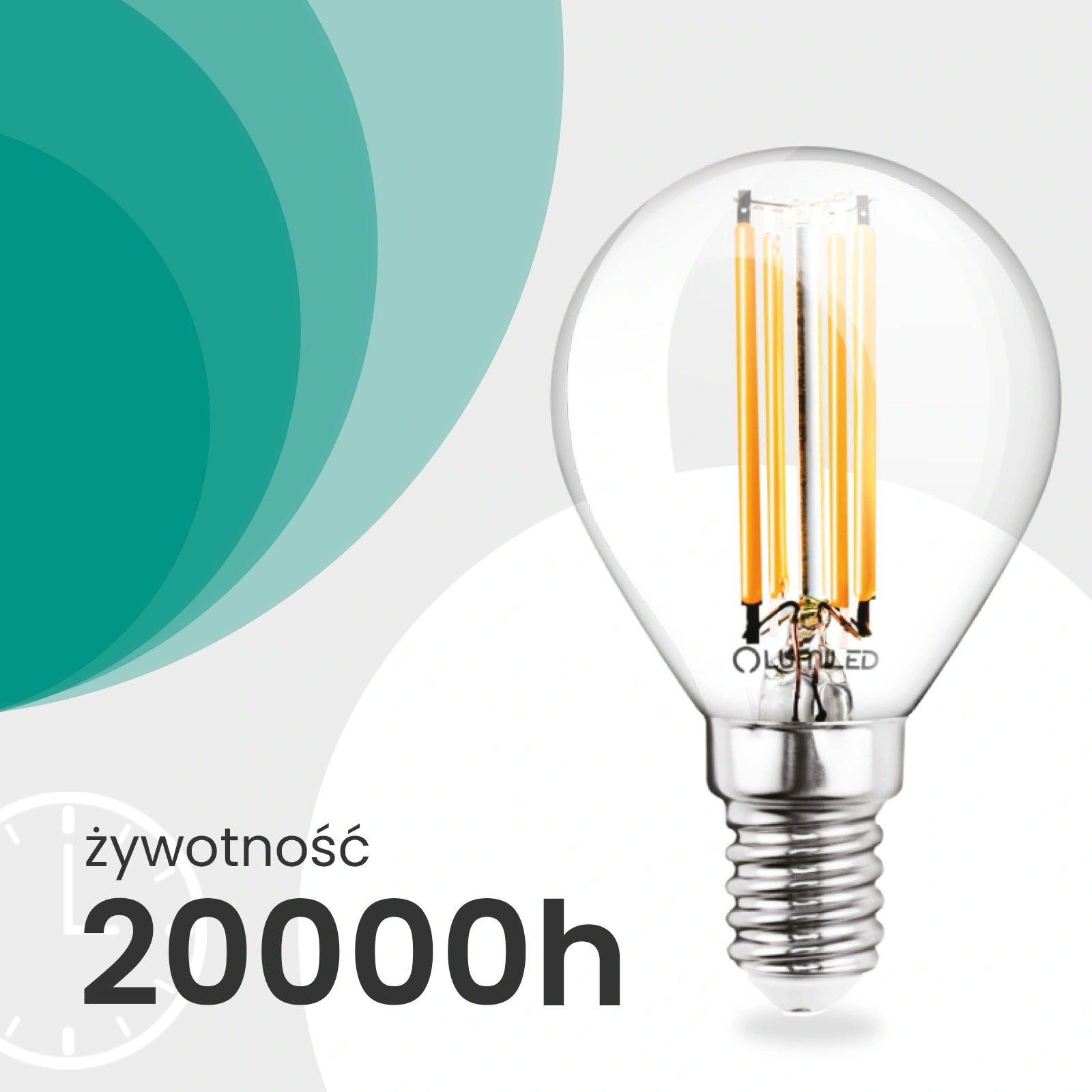 Żarówka LED E14 Kulka P45 2,2W 470lm = 40W 2700K Ciepła 360° Filament KLASA A LUMILED - obszar zastosowań