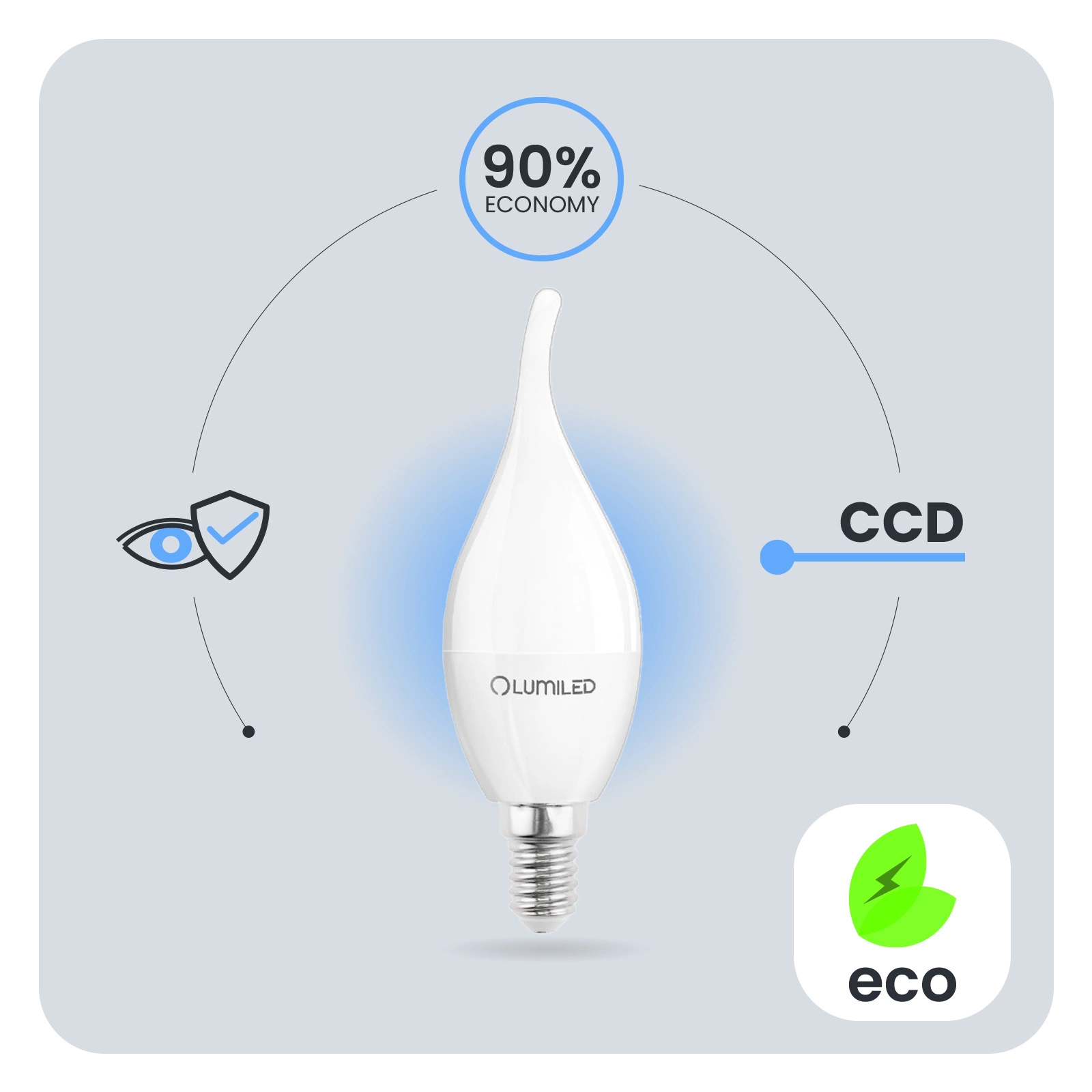 Zastosowana przetwornica CCD w żarówce LED sprawia, że żarówka jest odporna na spadki i wzrosty napięcia w sieci. Światło nie migocze, ani nie drży. Przetwornica CCD sprawia, że żarówka jest bezawaryjna przez długi czas. Żarówki LUMILED zaprojektowane zostały z myślą o jej użytkownikach. Słaba jakość oświetlenia może prowadzić do zmęczenia oczu dlatego nasze Żarówki posiadają opracowanie techniczne Eye Safe zapewnią komfortowe i przyjazne oświetlenie twoim oczom w każdym pomieszczeniu.