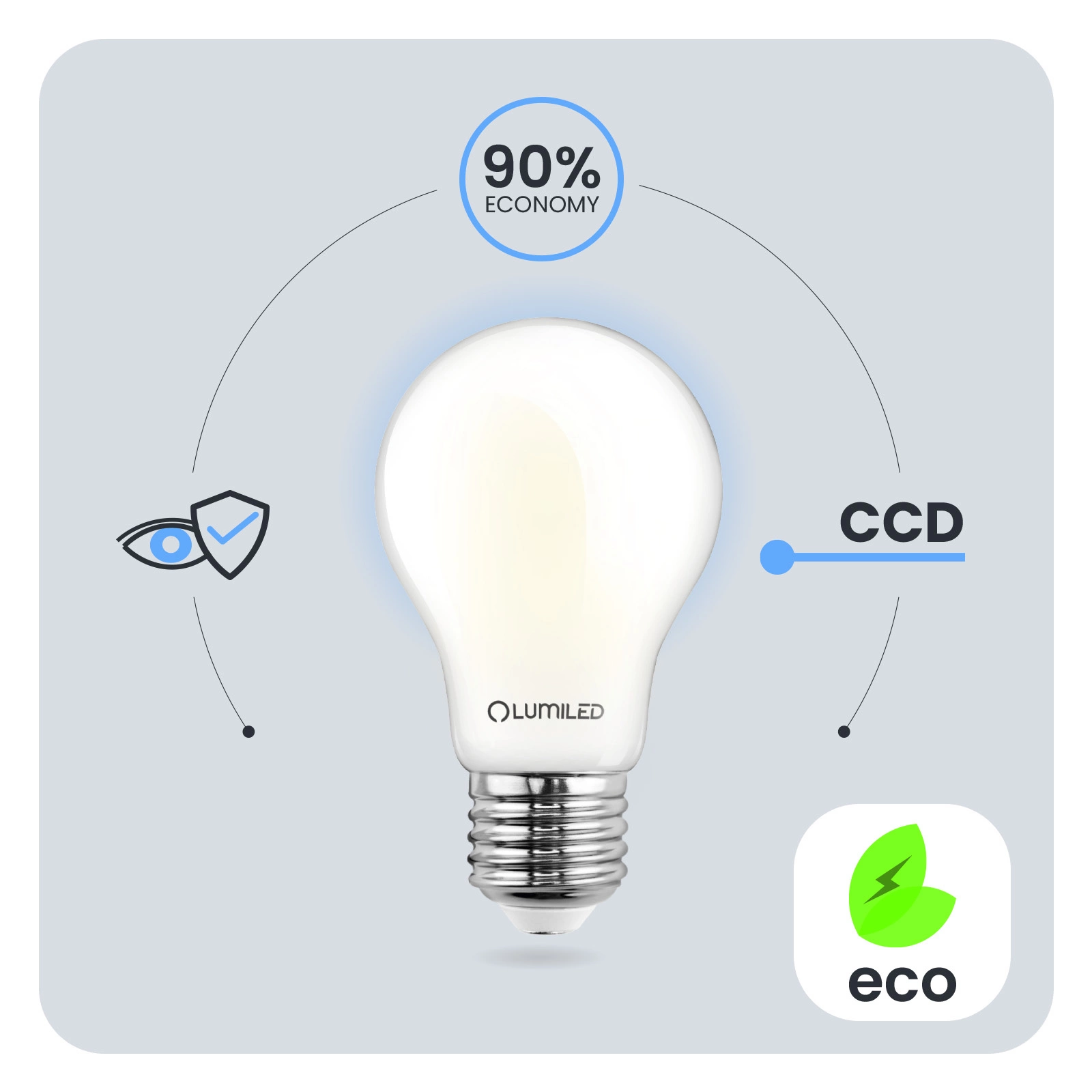 Zastosowana przetwornica CCD w żarówce LED sprawia, że żarówka jest odporna na spadki i wzrosty napięcia w sieci. Światło nie migocze, ani nie drży. Przetwornica CCD sprawia, że żarówka jest bezawaryjna przez długi czas. Żarówki LUMILED zaprojektowane zostały z myślą o jej użytkownikach. Słaba jakość oświetlenia może prowadzić do zmęczenia oczu dlatego nasze Żarówki posiadają opracowanie techniczne Eye Safe zapewnią komfortowe i przyjazne oświetlenie twoim oczom w każdym pomieszczeniu.