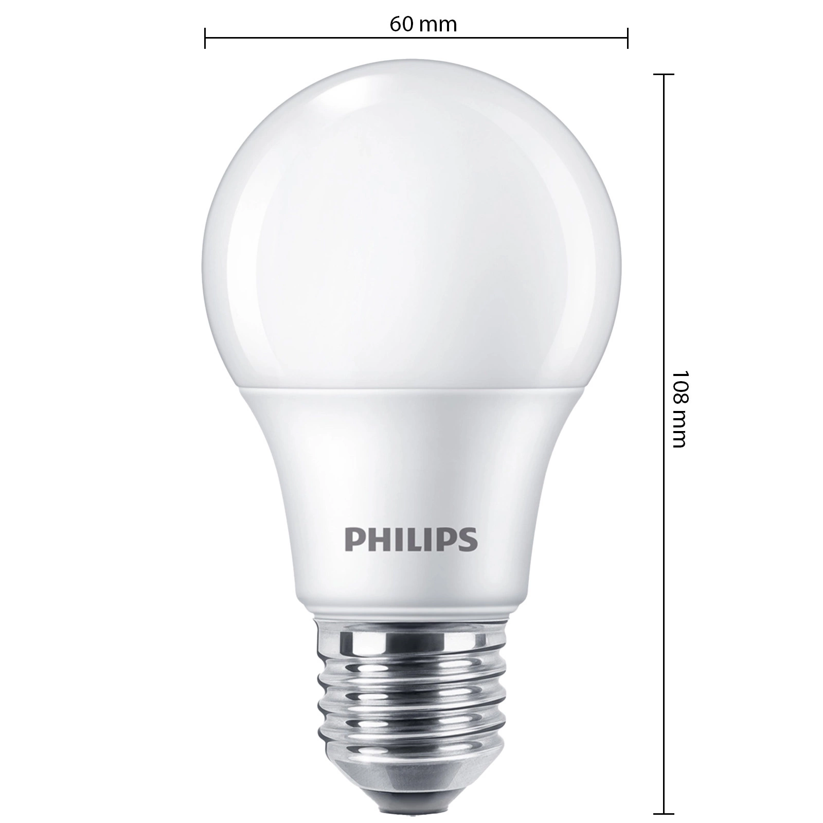 Przenieś swoje oświetlenie na wyższy poziom z żarówką LED Philips Essential. Ta wyjątkowa żarówka o mocy 7W, stanowi doskonały zamiennik tradycyjnych żarówek 50W, oferując znaczną oszczędność energii bez kompromisów w jasności. Dzięki wydajności 680 lumenów oraz ciepłemu, białemu światłu o temperaturze 3000K, żarówka tworzy niepowtarzalny, przytulny klimat w każdym wnętrzu. Trwały mleczny klosz i szeroki kąt rozsyłu światła 150° zapewniają równomierne oświetlenie przestrzeni, a wszystko to w eleganckim i klasycznym kształcie A60.