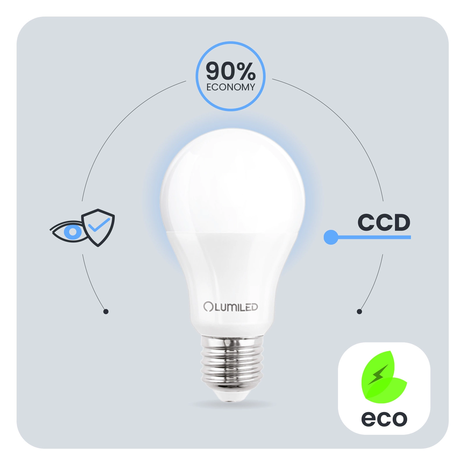 Zastosowana przetwornica CCD w żarówce LED sprawia, że żarówka jest odporna na spadki i wzrosty napięcia w sieci. Światło nie migocze, ani nie drży. Przetwornica CCD sprawia, że żarówka jest bezawaryjna przez długi czas. Żarówki LUMILED zaprojektowane zostały z myślą o jej użytkownikach. Słaba jakość oświetlenia może prowadzić do zmęczenia oczu dlatego nasze Żarówki posiadają opracowanie techniczne Eye Safe zapewnią komfortowe i przyjazne oświetlenie twoim oczom w każdym pomieszczeniu.