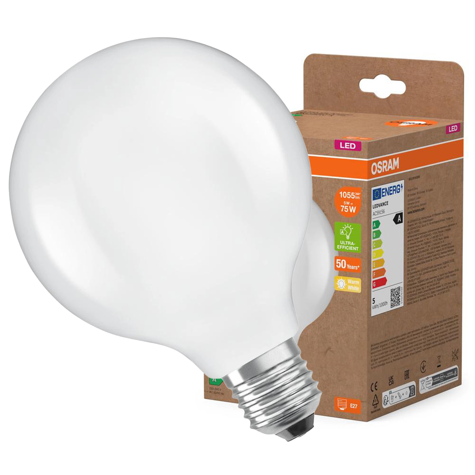 Odkryj wyjątkową jakość oświetlenia z żarówką LED G95 od renomowanej firmy OSRAM. Ta energooszczędna żarówka o mocy 5W odpowiada tradycyjnej 75W, dostarczając wydajny strumień świetlny o intensywności 1055lm i ciepłej barwie 2700K. Jej klasyczny design i solidne wykonanie ze szkła nadają eleganckiego charakteru każdemu wnętrzu.