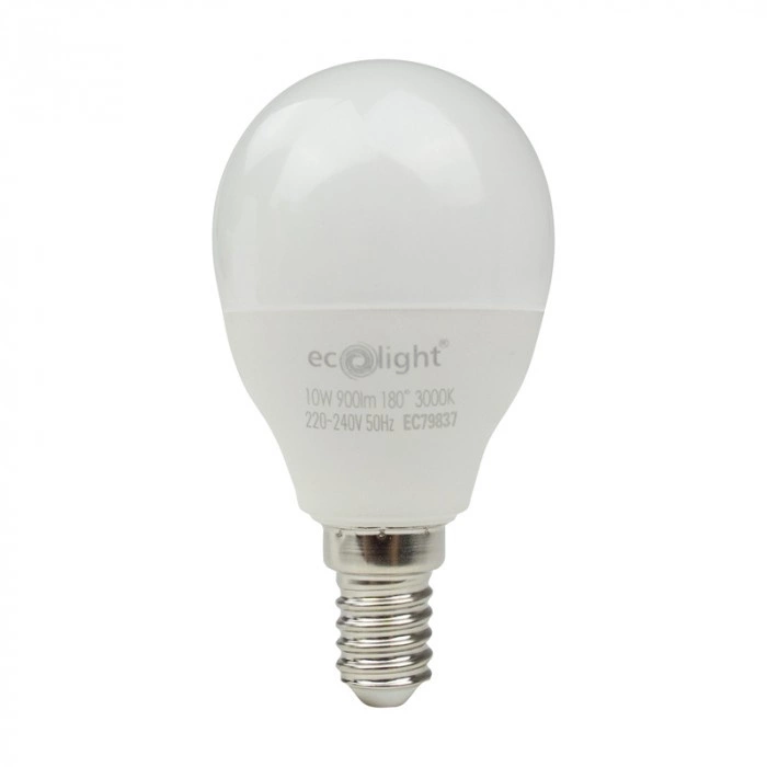 Ożyw swoje wnętrze za pomocą żarówki LED Kulka P45 E14 o mocy 10W marki Ecolight! Dzięki swoim doskonałym parametrom, takim jak strumień świetlny 900 lm oraz temperatura barwowa 3000K emitująca ciepłe białe światło, idealnie nadaje się do tworzenia przytulnej atmosfery w każdym pomieszczeniu. Dzięki wysokiemu kątowi rozsyłu światła 180°, zapewnia równomierne oświetlenie nawet największych przestrzeni.