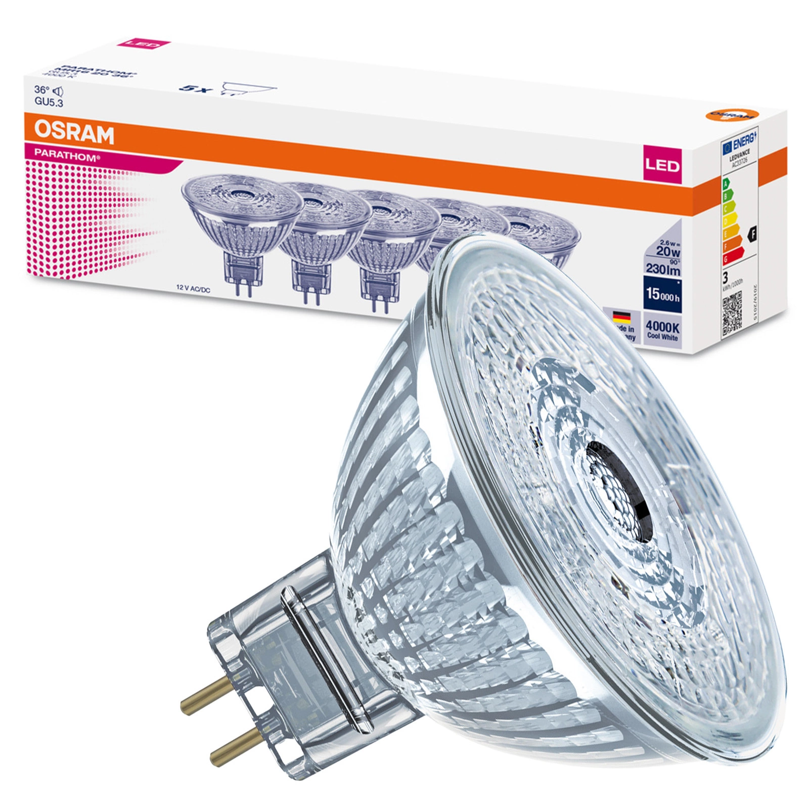 Żarówka LED MR16 Reflektor GU5.3 oferowana przez markę Osram z serii PARATHOM to nowoczesne rozwiązanie oświetleniowe, które łączy w sobie wysoką wydajność i oszczędność energii. Dzięki swojej mocy znamionowej 2.6W, odpowiadającej tradycyjnej żarówce 20W, produktem tym uzyskamy przyjemne światło o strumieniu świetlnym 230 lm. Neutralna biała barwa światła o temperaturze barwowej 4000K zapewnia komfortową atmosferę, idealną zarówno do domowych wnętrz, jak i miejsc pracy. Kąt rozsyłu światła wynoszący 36° umożliwia precyzyjne kierowanie światła na wybrane miejsca, co czyni tę żarówkę doskonałym wyborem do zastosowań punktowych.