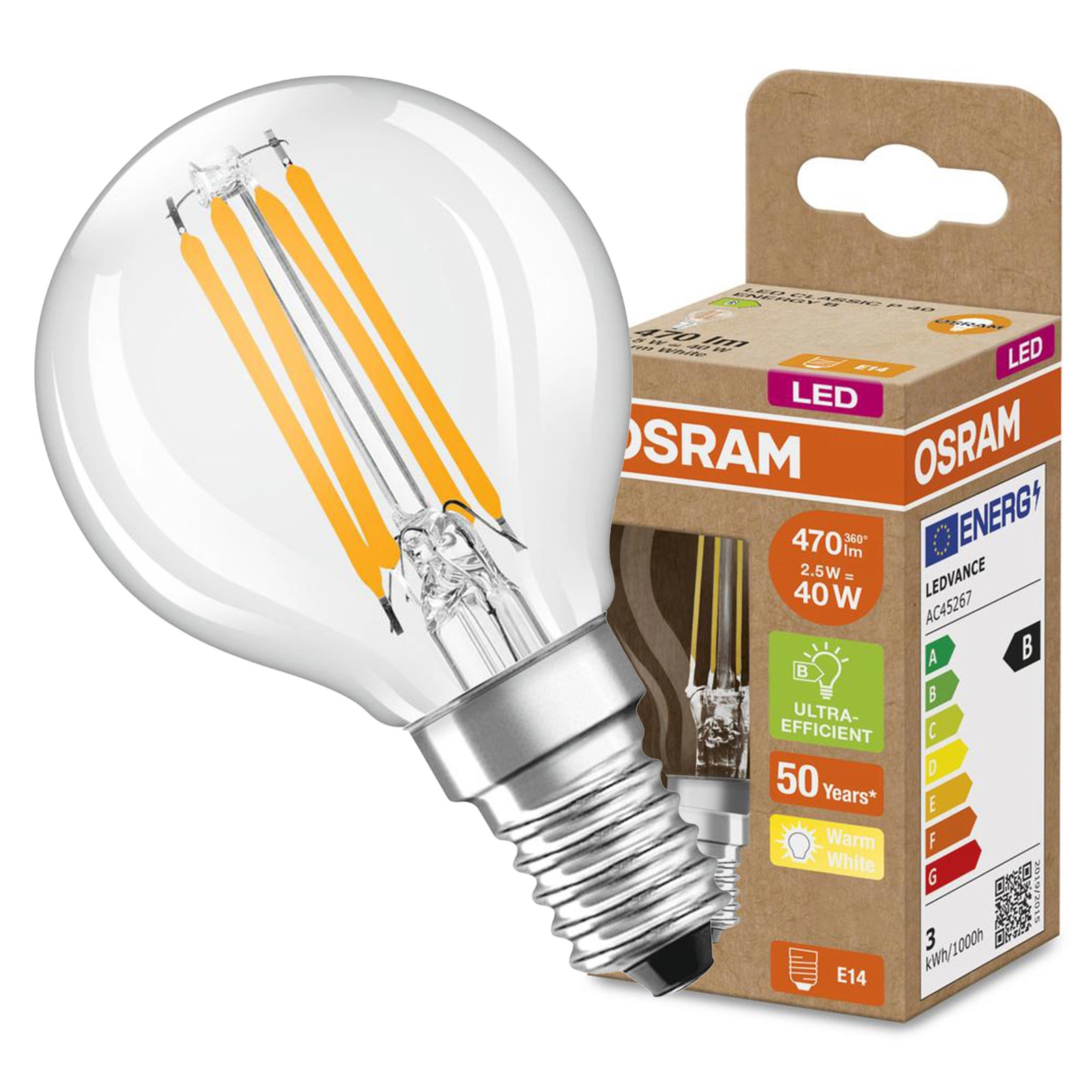 Żarówka LED P45 Kulka E14 2.5W = 40W 470lm 2700K Ciepła 300° 188lm/W CLASSIC ENERGY EFFICIENCY Osram