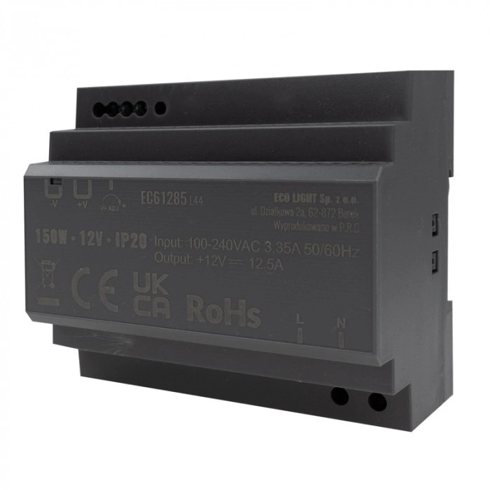 - Szerokie zastosowanie: Idealny dla systemów automatyki, oświetlenia LED i innych zastosowań przemysłowych, dzięki wyjściowemu napięciu 12V DC i prądowi 12.5A.