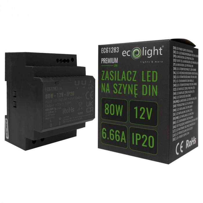 Odkryj zasilacz na szynę DIN o mocy 80W, proponowany przez linie PREMIUM od Ecolight, doskonale wpisujący się w potrzeby różnorodnych systemów wymagających zasilania 12V DC. Dzięki stabilnemu wyjściu o natężeniu 6.66A i zastosowaniu polichlorku winylu, zasilacz zapewnia nie tylko niezawodność, ale także długotrwałe działanie. Kompaktowa konstrukcja ułatwia montaż na szynie DIN, co sprawia, że jest on idealnym wyborem do instalacji w rozdzielnicach, systemach automatyki, oświetlenia oraz systemach alarmowych.