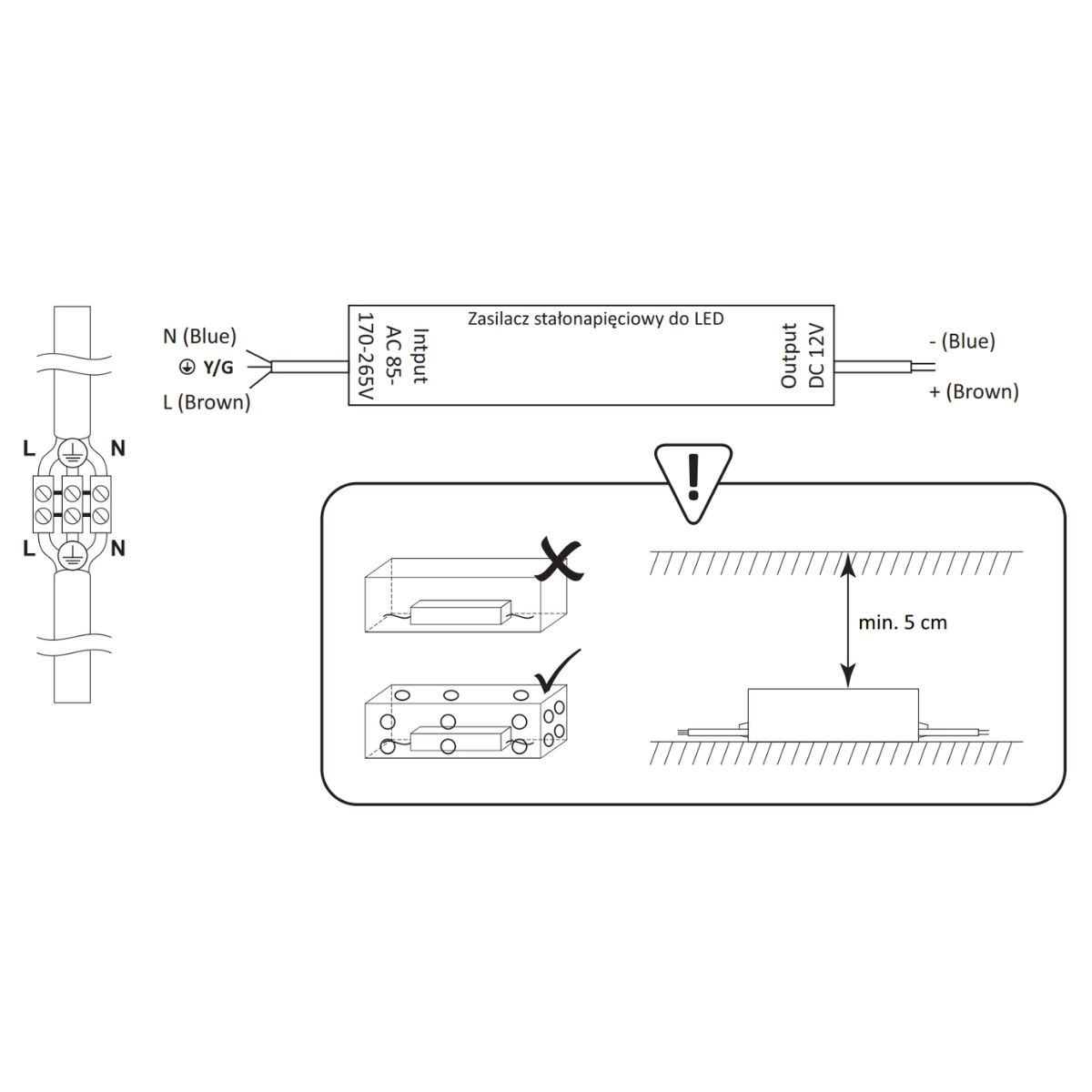- Zastosowania zewnętrzne i wewnętrzne - dzięki klasie ochrony IP67 zasilacz jest idealny zarówno do użytku na zewnątrz, jak i wewnątrz.