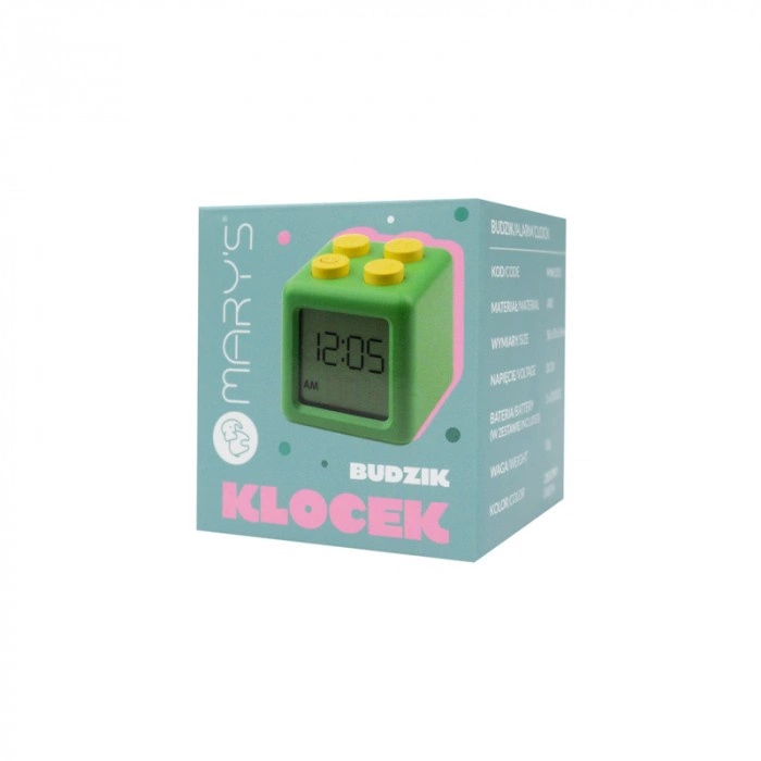 Zegar Elektroniczny dla Dzieci BUDZIK Zielony Baterie mAh KLOCEK MARY'S