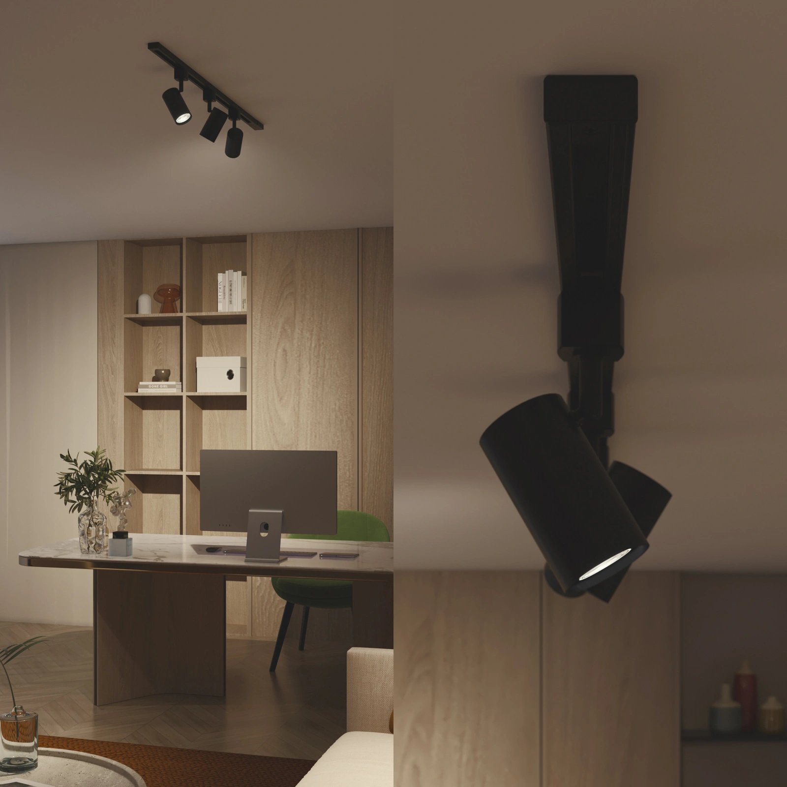 System szynowy zapewnia pełną kontrolę nad oświetleniem i umożliwia jego precyzyjne dopasowanie do stylu życia domowników. Współpracuje z szeroką gamą standardowych oraz inteligentnych żarówek i reflektorów o trzonku GU10, dając swobodę wyboru dokładnie takiego światła, jakiego potrzebujesz. Możliwość zastosowania ściemnianych źródeł światła z obsługą zdalną pozwala łatwo budować klimat wnętrza, a żarówki z regulacją temperatury barwowej umożliwiają płynne przejście od chłodnej, pobudzającej bieli do ciepłego, relaksującego światła. To rozwiązanie, które pozwala zmieniać charakter pomieszczenia jednym ruchem i dostosować oświetlenie do każdej chwili dnia.