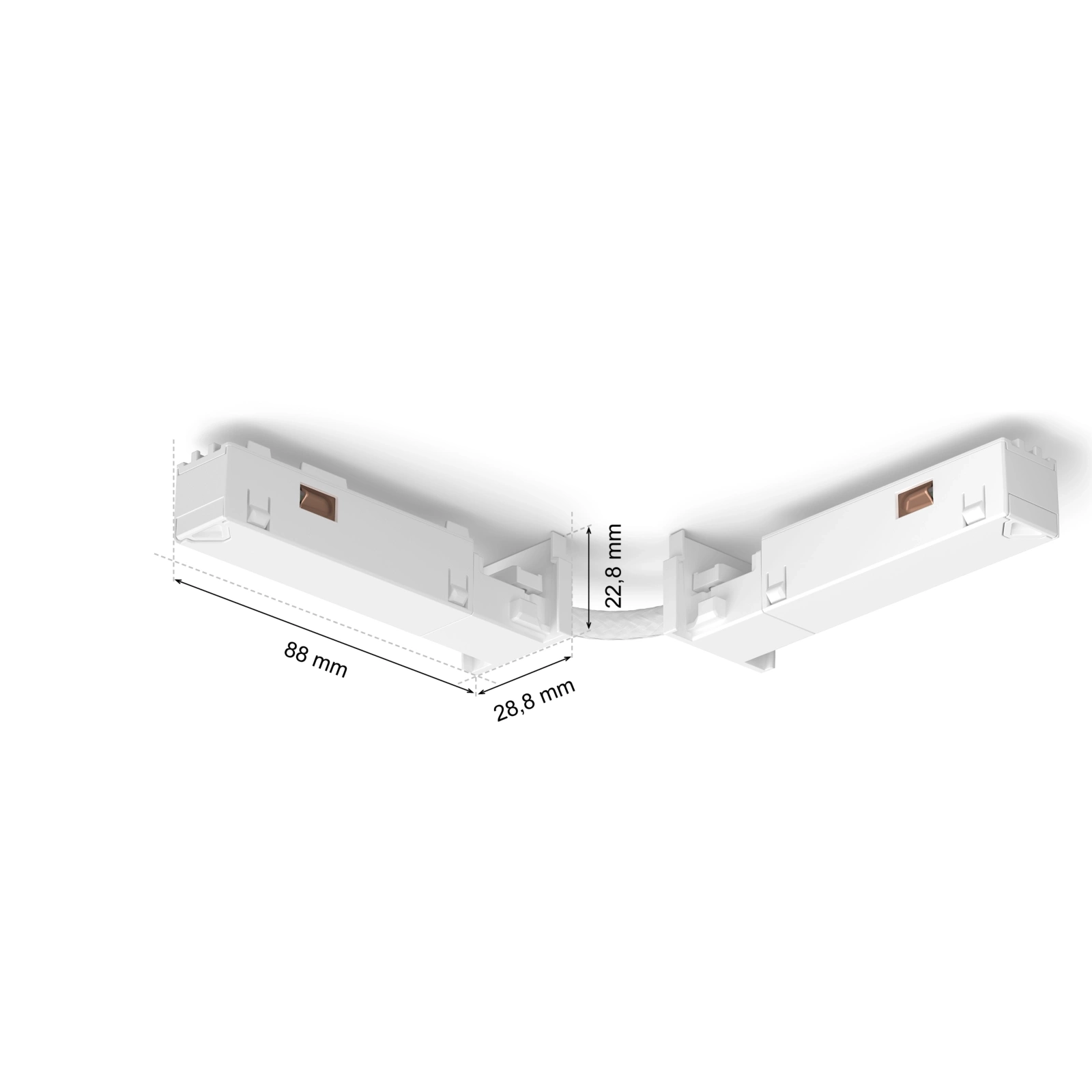 - Elastyczne łączenie szyn: Umożliwia połączenie dwóch szyn oświetleniowych pod dowolnym kątem, dopasowując instalację do układu pomieszczenia.