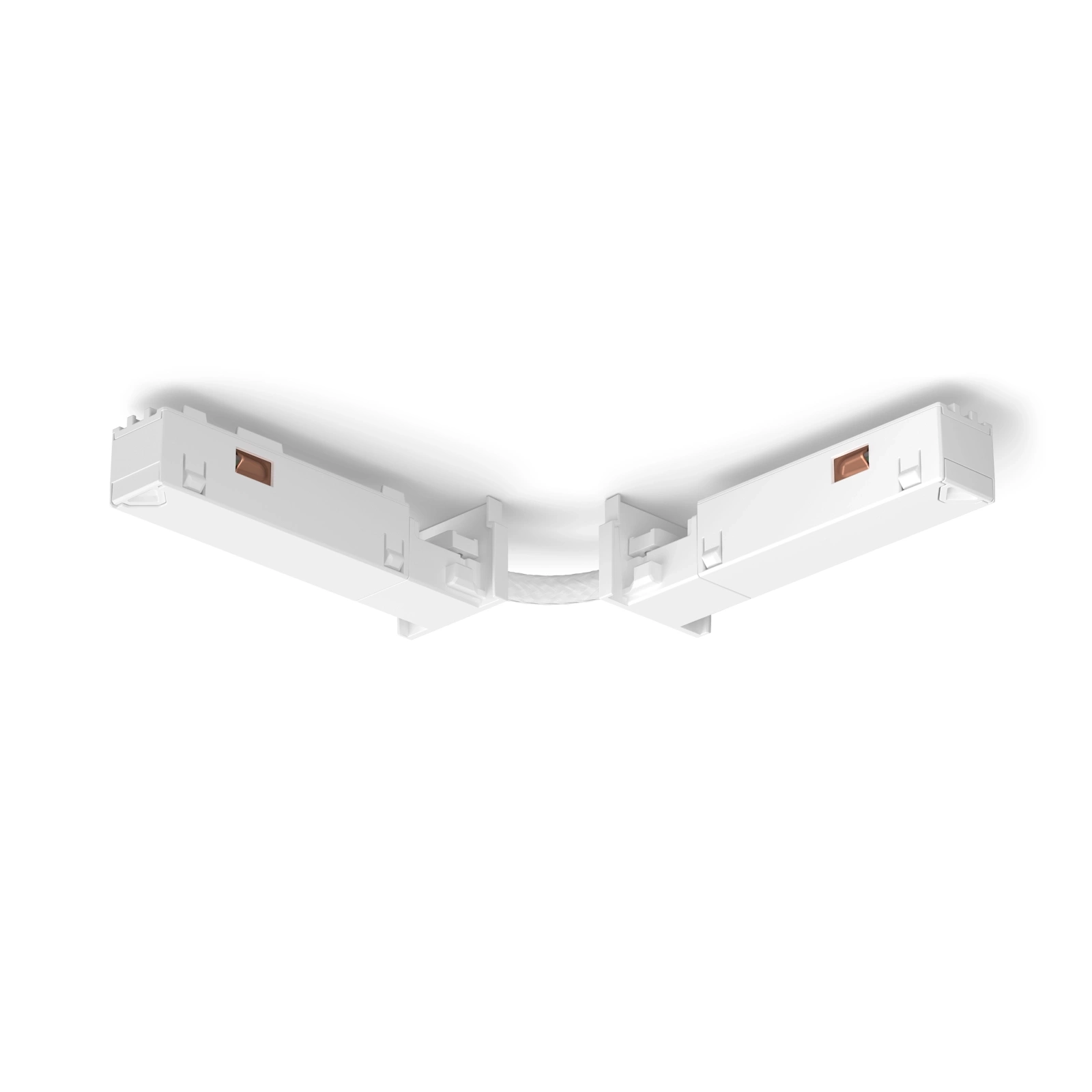 Złącze elastyczne Perifo w kolorze białym umożliwia tworzenie dowolnych kształtów instalacji szynowej, dopasowanych do układu pomieszczenia. Pozwala wyginać szynę w różnych kierunkach lub poprowadzić oświetlenie z sufitu na ścianę. Przeznaczone wyłącznie do systemu oświetlenia szynowego Perifo.