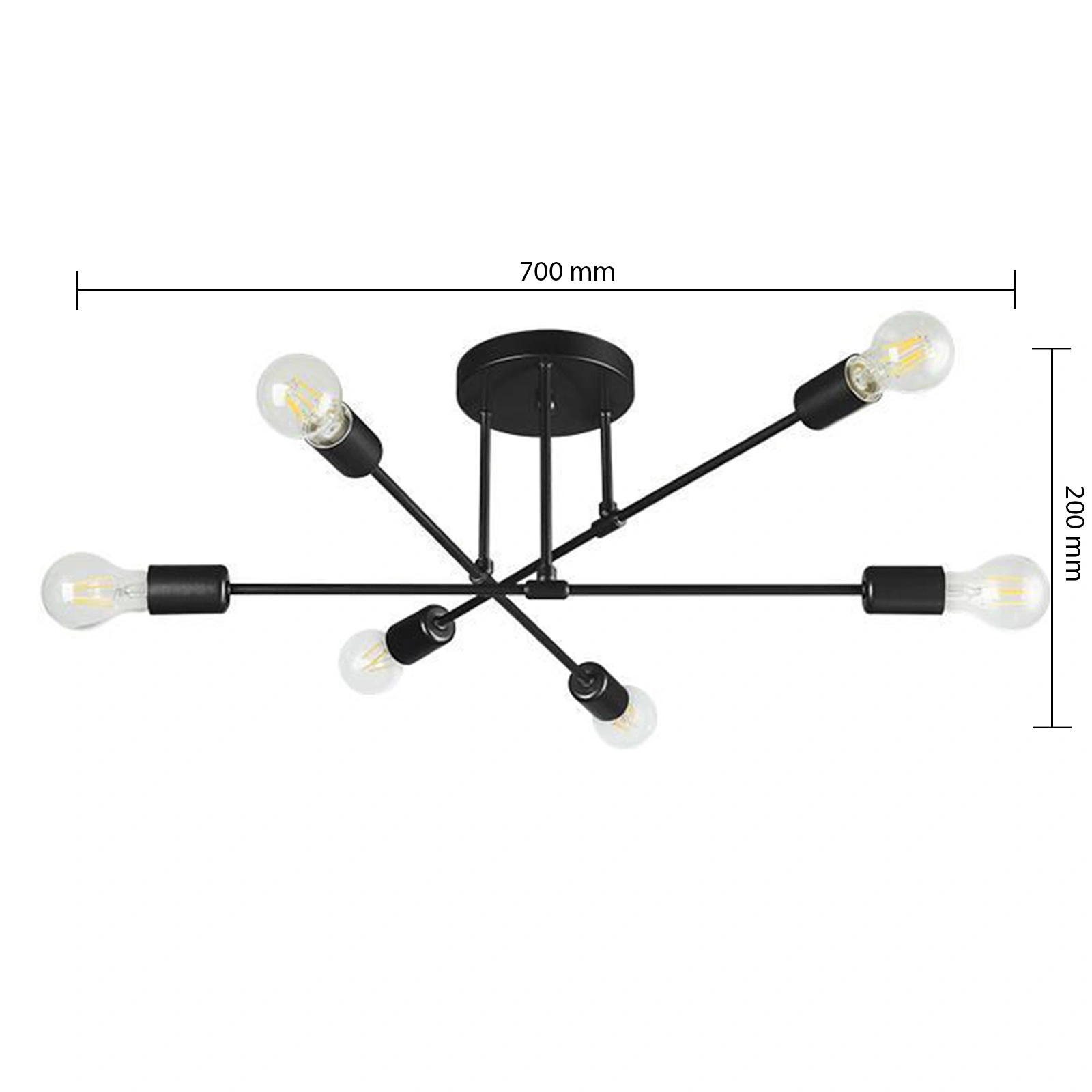 Żyrandol Lampa Oprawa Wisząca Sufitowa Dekoracyjny 6x E27 Czarny 70cm Masterled
