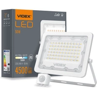 Naświetlacz LED 50W 4500lm 5000K IP65 Biały z czujnikiem ruchu i zmierzchu VIDEX LUCA