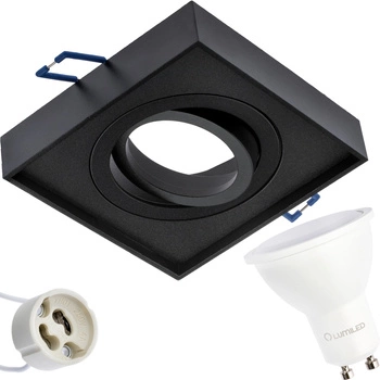 Zestaw Oprawa HALOGENOWA Tuba Spot Ruchoma MIDI GU10 Kwadratowa Czarna 20mm + LED GU10 6W 4000K LUMILED