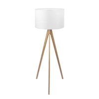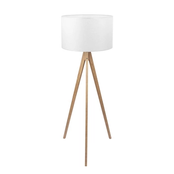 Lampa Podłogowa Stojąca TREVISO WHITE Trójnóg Abażur Biało-Drewniana Skandynawska E27 5038 TK Lighting