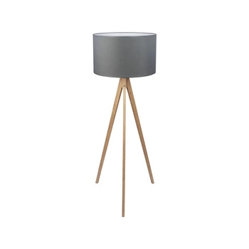 Lampa Podłogowa Stojąca TREVISO GRAY Trójnóg Abażur Szaro-Drewniana Skandynawska E27 5040 TK Lighting