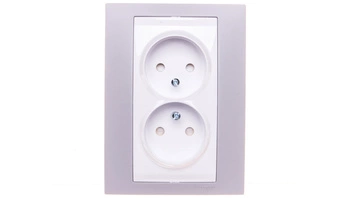 Unica Plus Gniazdo podwójne 2P z przesłonami szary alabaster MGU63.063.865