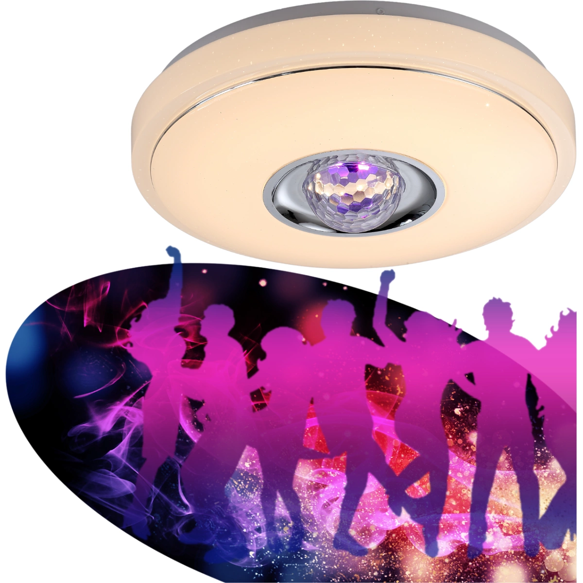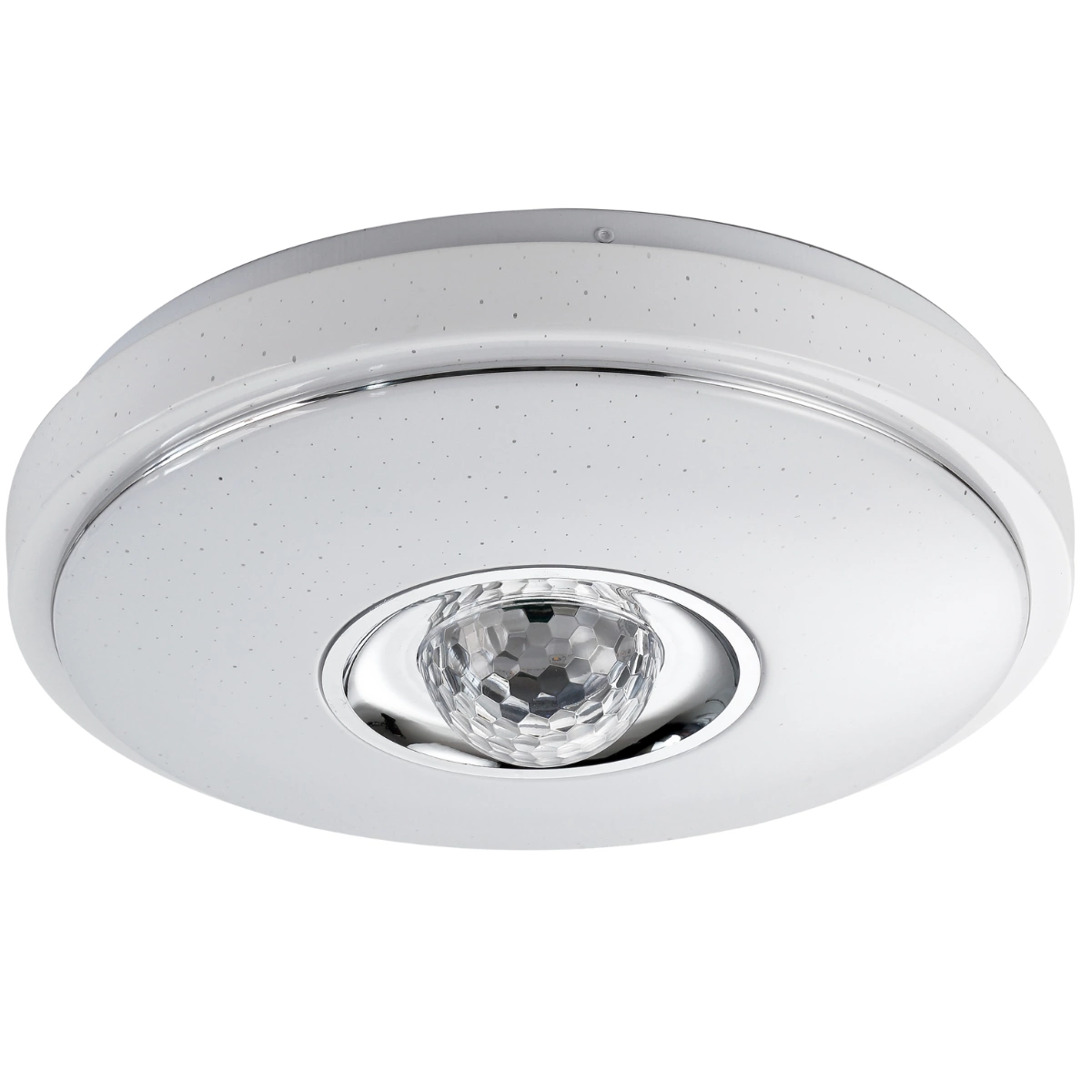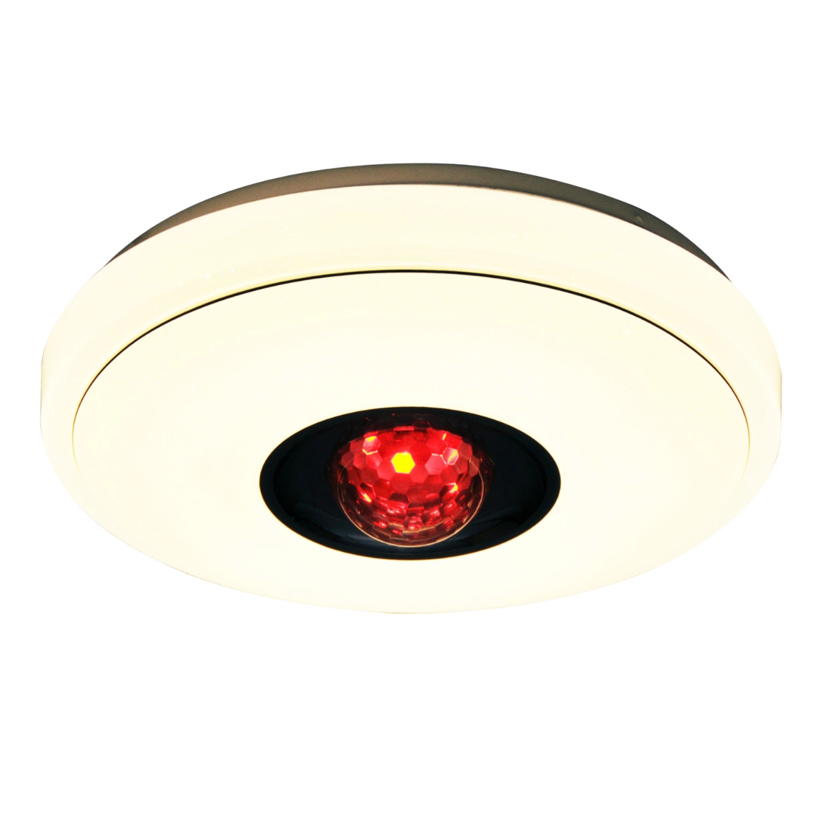 Plafon LED MAGIC DISCO sterowany pilotem marki Polux o średnicy 38 cm, należy do opraw natynkowych, które świetnie sprawdzi się w różnych warunkach. Oprawa LED ma wbudowane źródło światła o mocy 18W i ciepłej barwie światła o temperaturze barwowej 3000K oraz kula, która posiada wielokolorową barwę światła, dzięki RGB plafon robi prawdziwą dyskotekę! Plafon posiada biały klosz, który równomiernie zmiękcza i rozprasza światło, dzięki czemu eliminuje efekt olśnienia. Plafon zawieszony w centralnym miejscu będzie cieszącą oczy ozdobą, seria ta charakteryzuje się ciekawym designem skierowanym zarówno do miłośników nowoczesnego stylu jak i bardziej uniwersalnego, doda im uroku i sprawi, że odmienią one swoje oblicze.