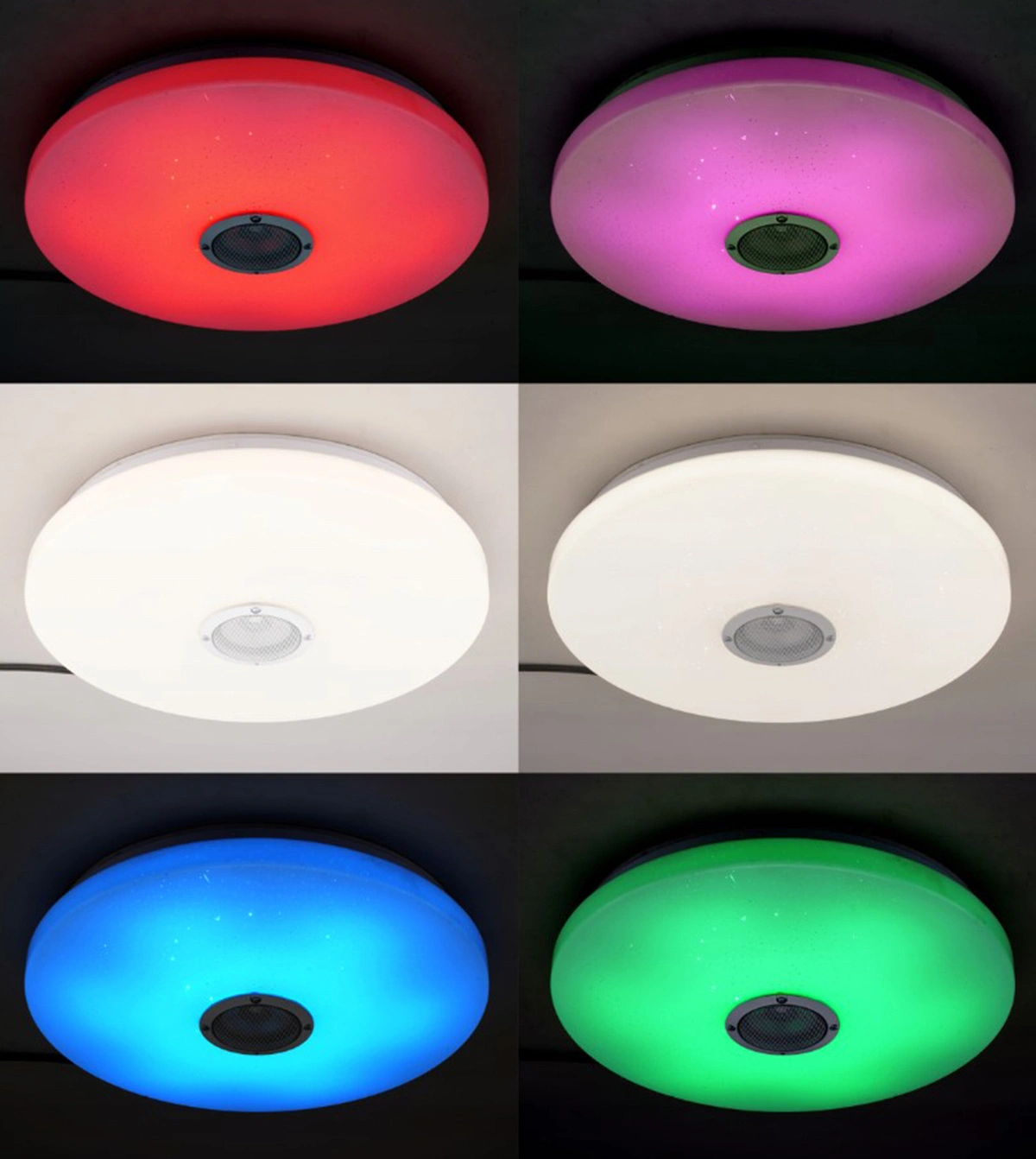 PLAFON LED posiada głośnik, dzięki temu możemy puszczać muzykę z dowolnego urządzenia, które posiada bluetooth